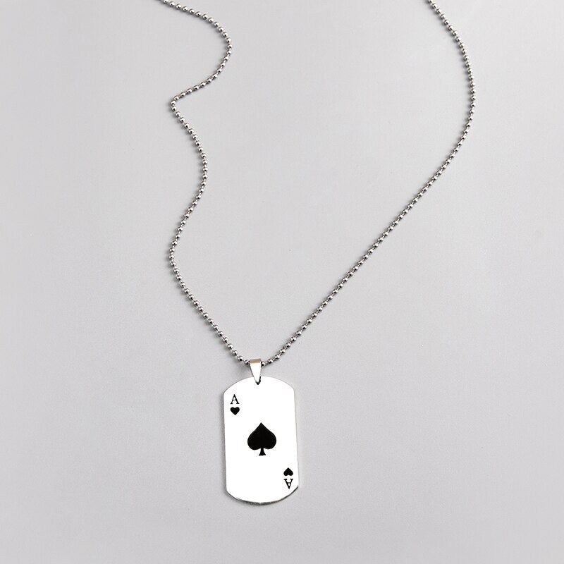 Creative Poker Ace of Spades Necklace Stainless Steel Playing Card Pendant Necklaces Hip Hop Jewelry