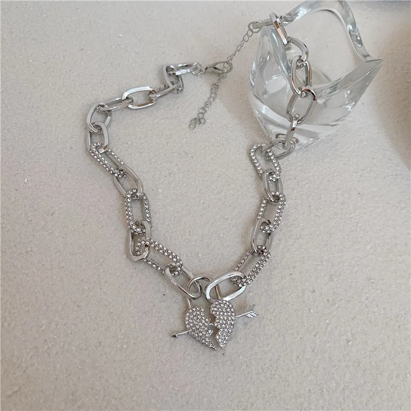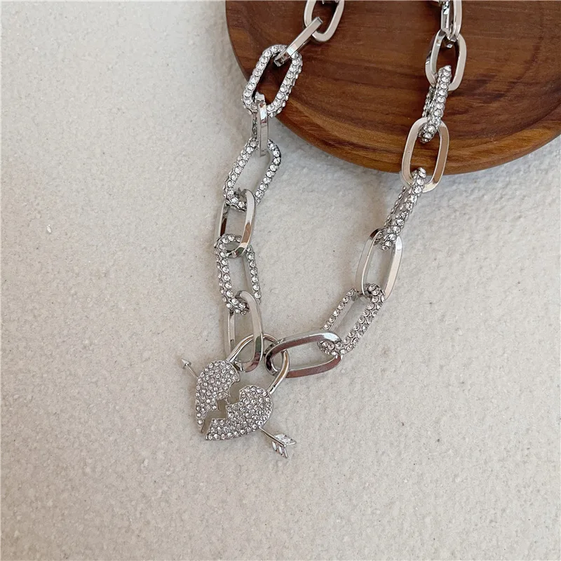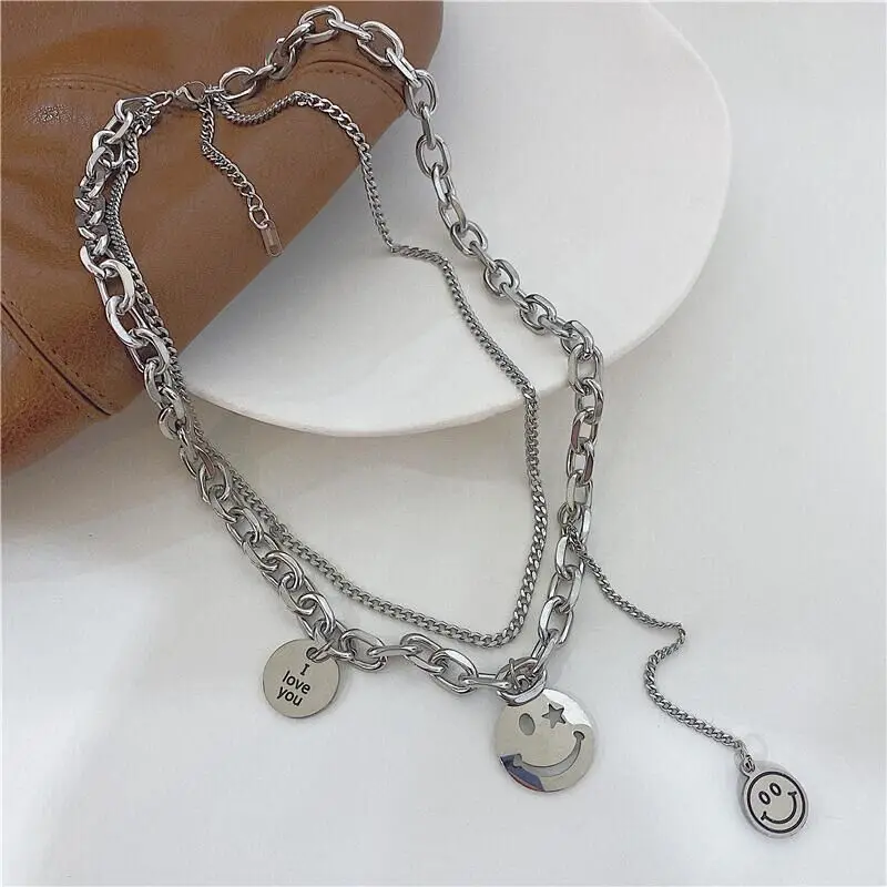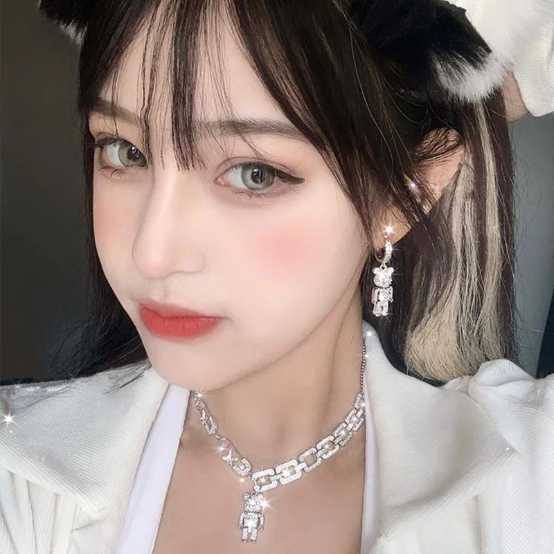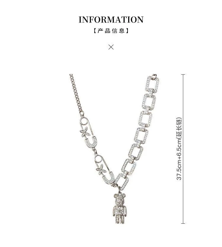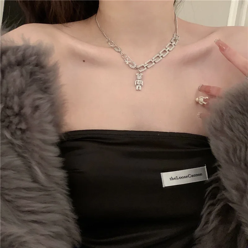 Creative Rhinestone Pearl Love Bear Cuban Chain Personality Hip Hop Punk Smiley Snake Clavicle Chain Necklace