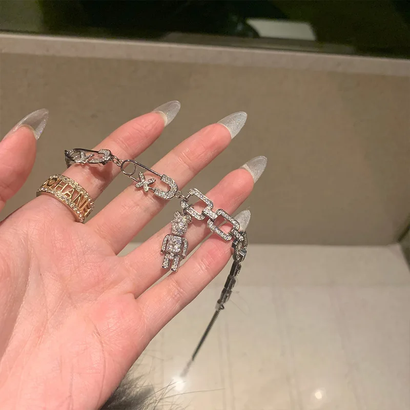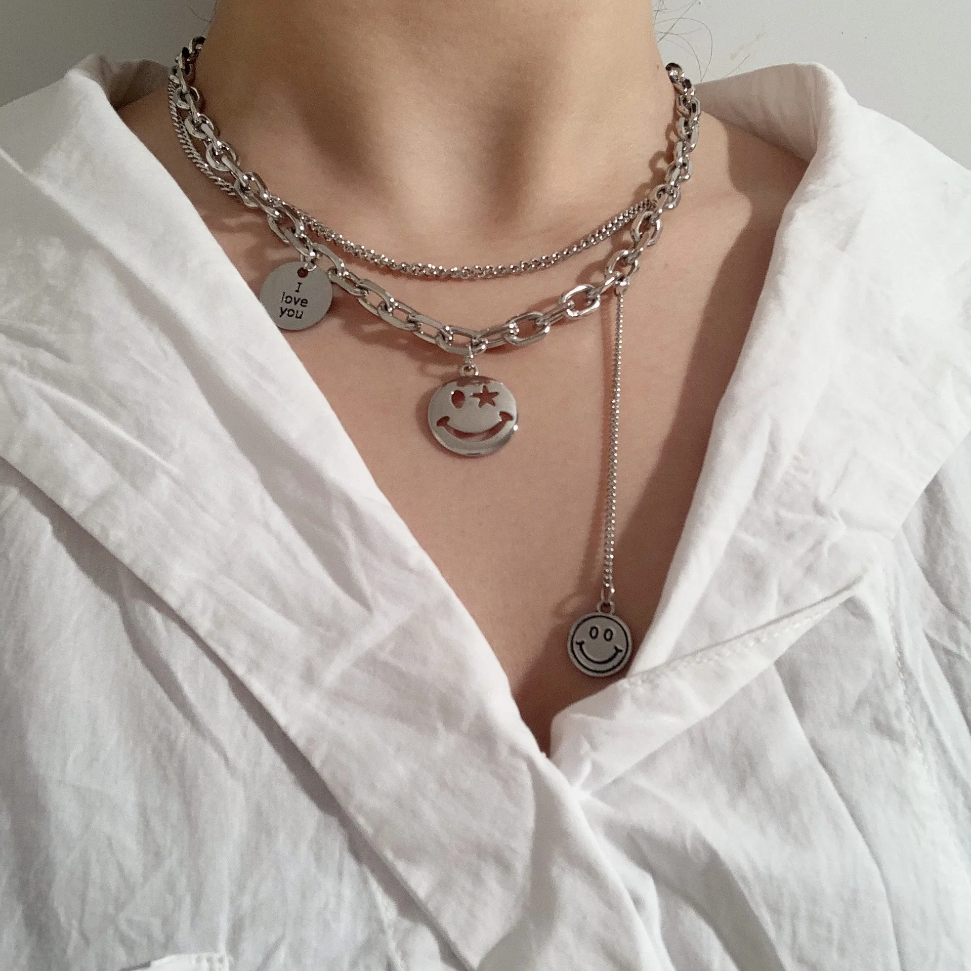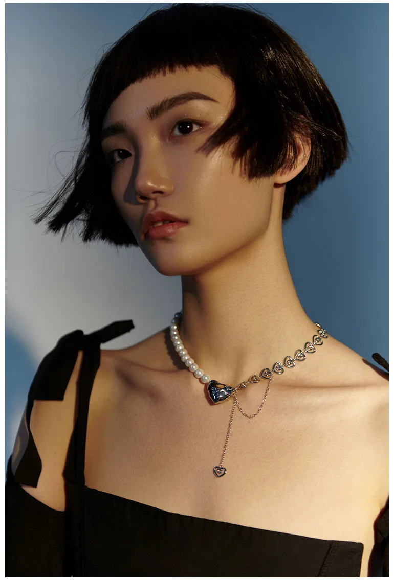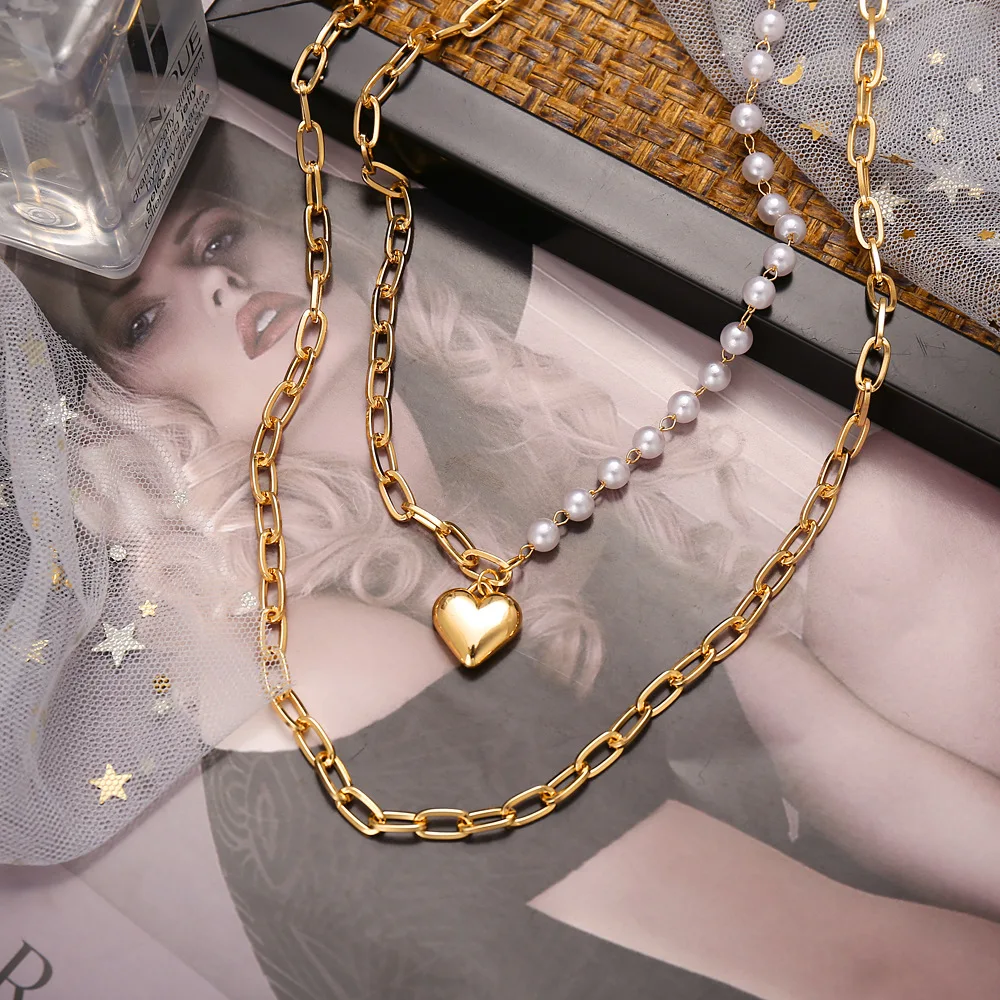 Creative Rhinestone Pearl Love Bear Cuban Chain Personality Hip Hop Punk Smiley Snake Clavicle Chain Necklace