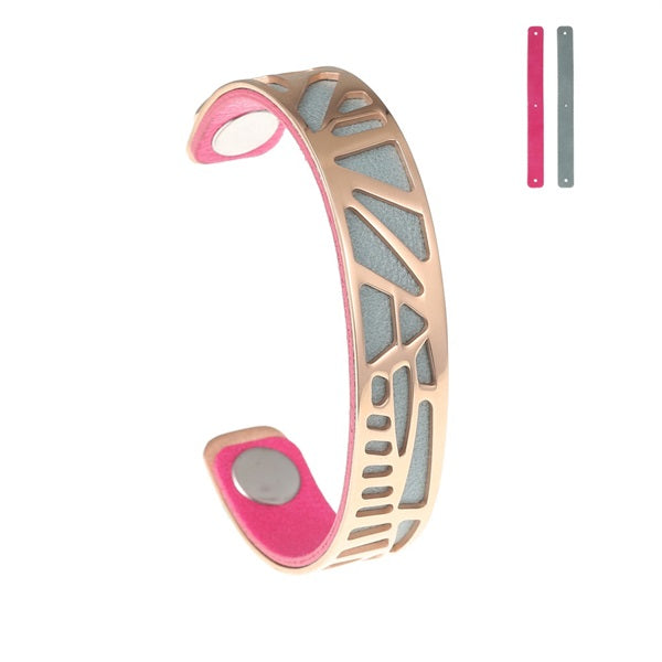 Leather Bracelets & Bangles For Women Hollow Stainless Steel Cuff 14mm Leather Bangle Jewelry