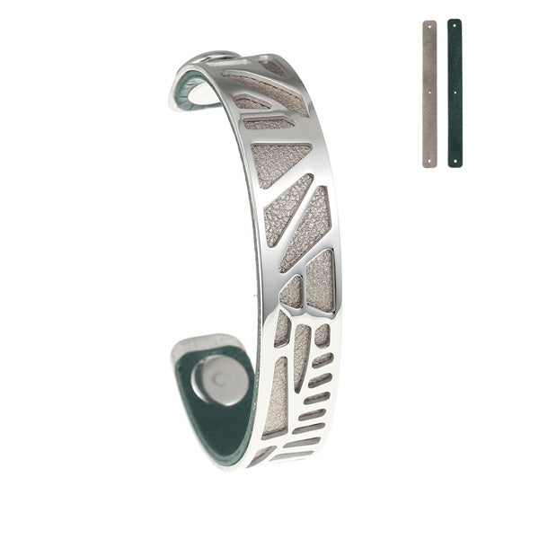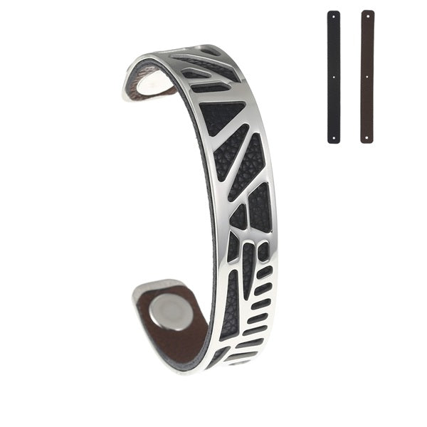 Palm Tree Bracelets Plover Cuff 14mm Wide Cham Leather Bracelet Reversible Bijoux Femme Bangles Stainless Steel Pulseras