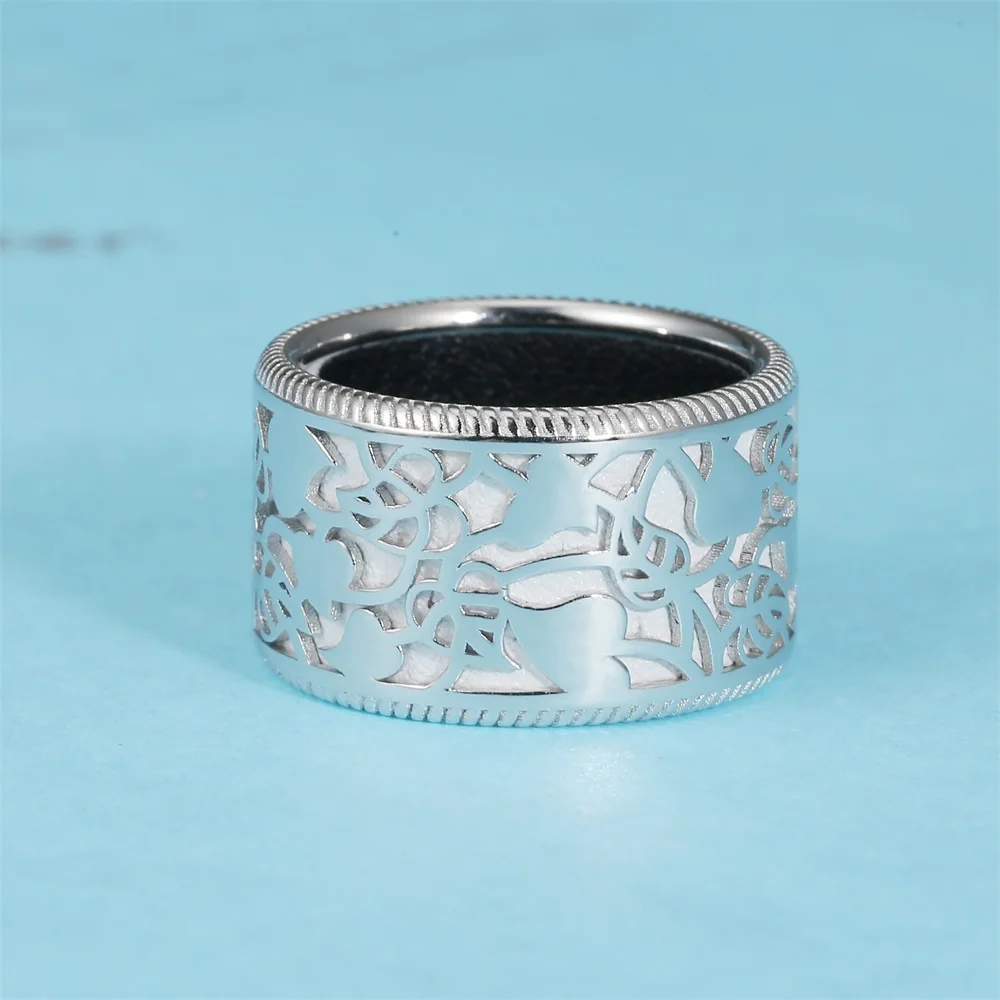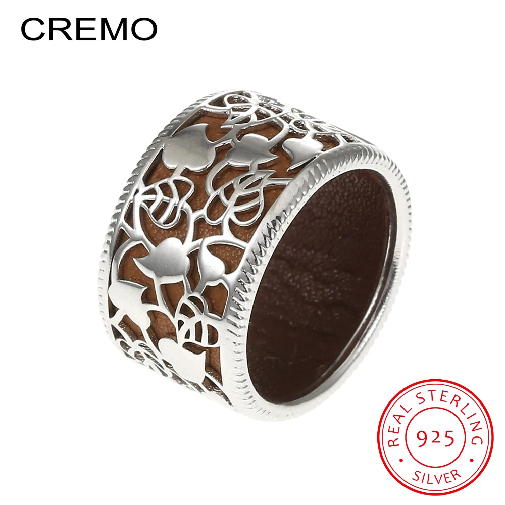 Rattan Flower Pure Silver Retro Classic Ring For Woman Bijouterie Transform Leather Color Rings Patent Unique Design