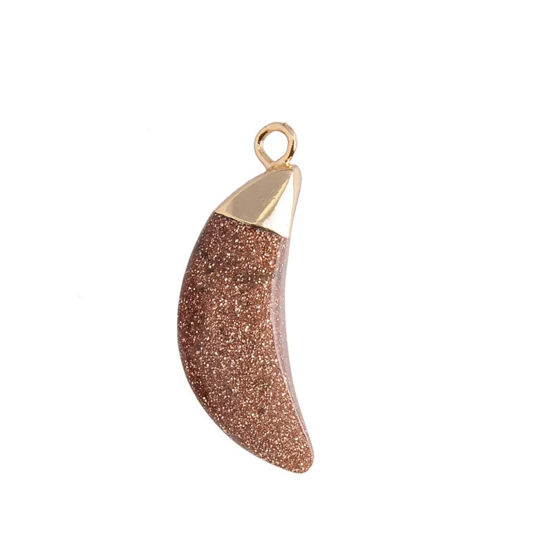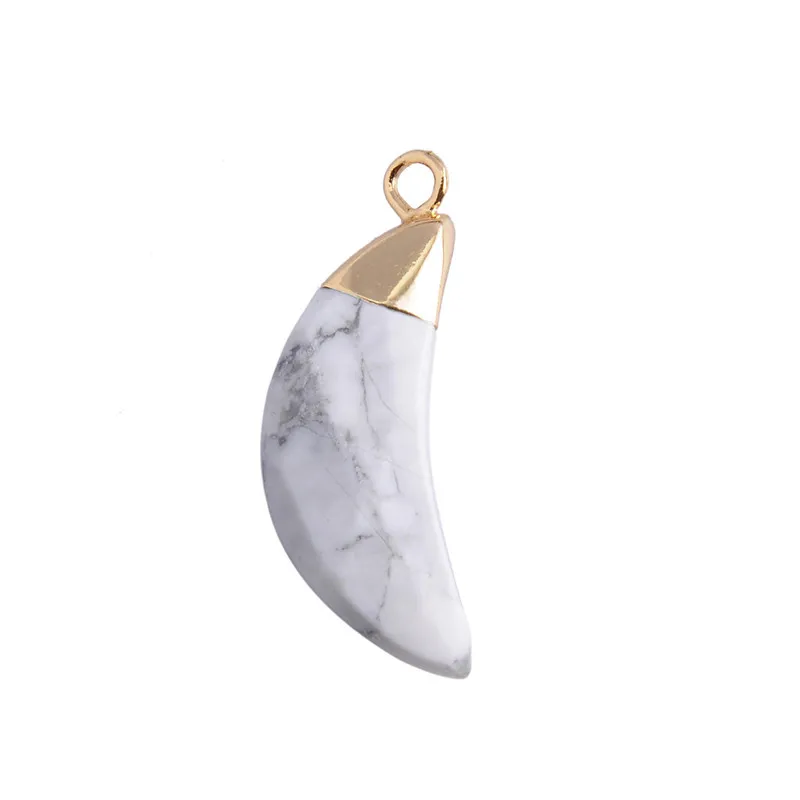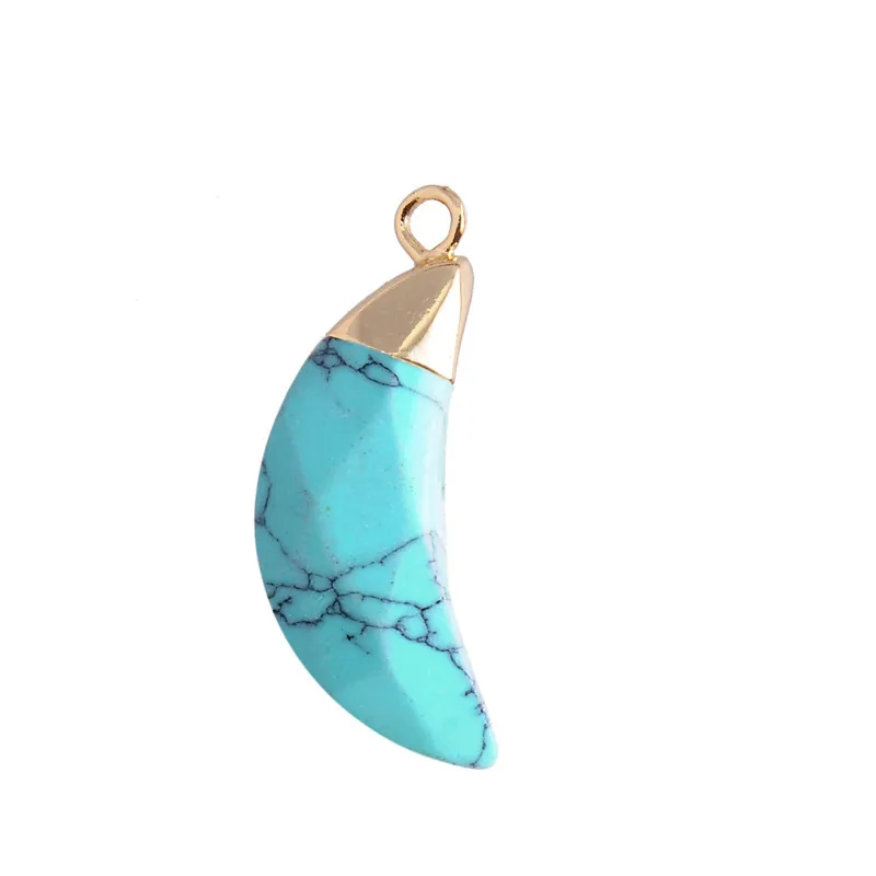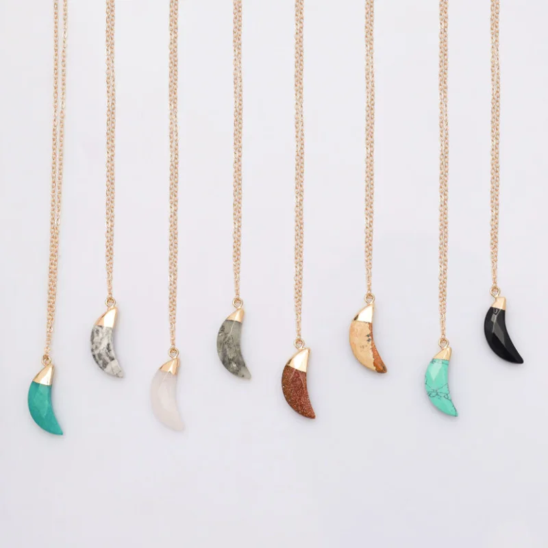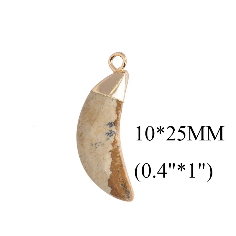 Crescent Moon Shaped Charm Natural Stone Pendant with Gold Plated Brass Bail Chakra Healing Point Reiki with Chain