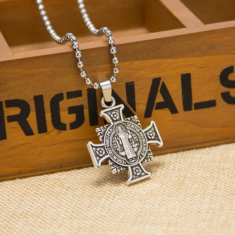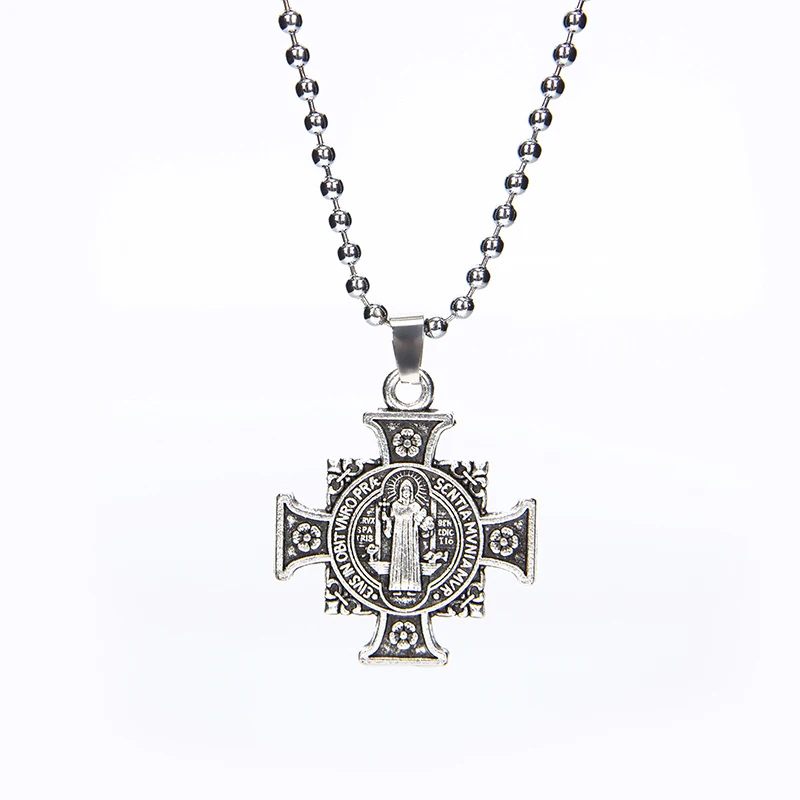 cross San Benito Medal Cross Jesus Pendant Stainless Steel Saint Benedict Link Chain Necklaces for Women Men Religious Jewelry
