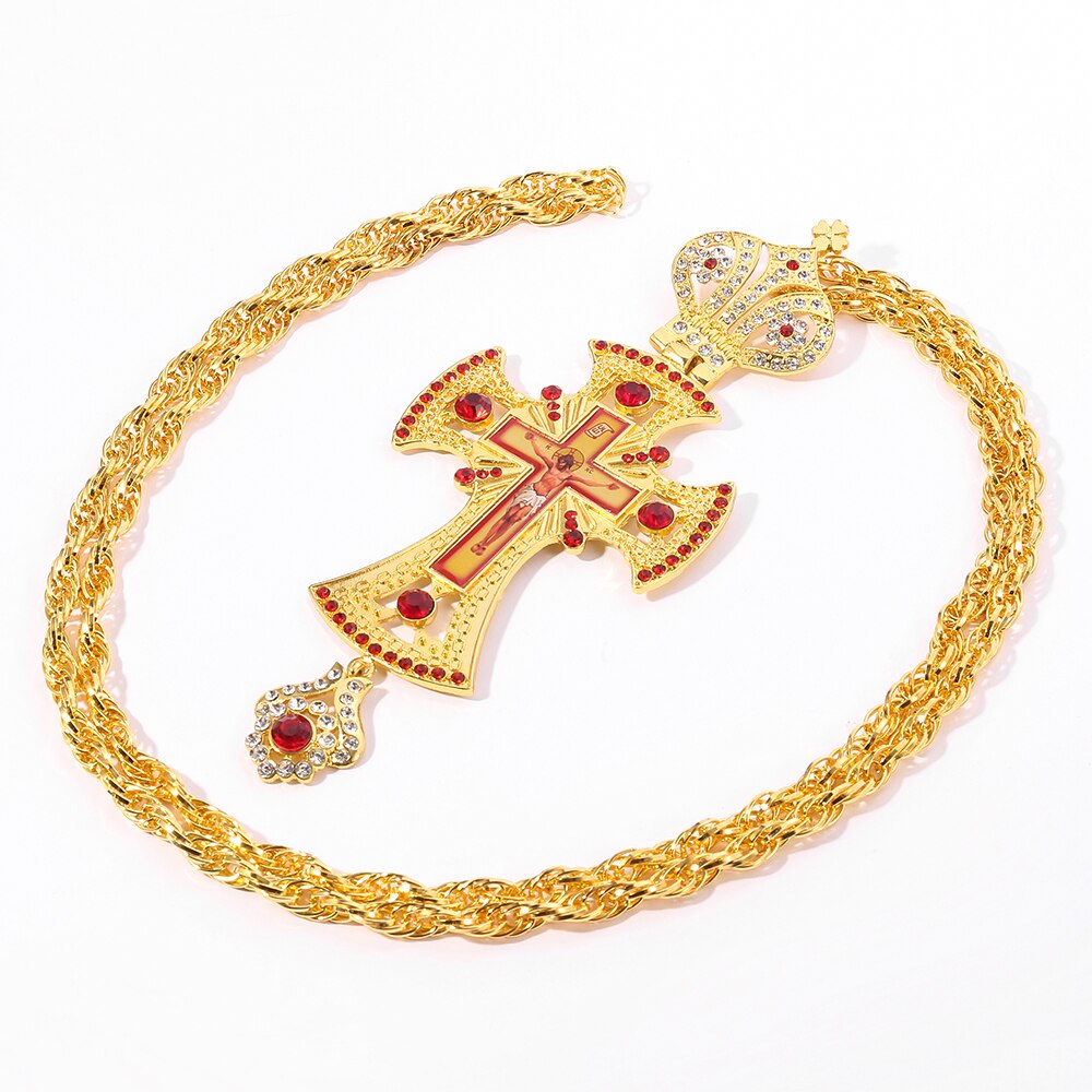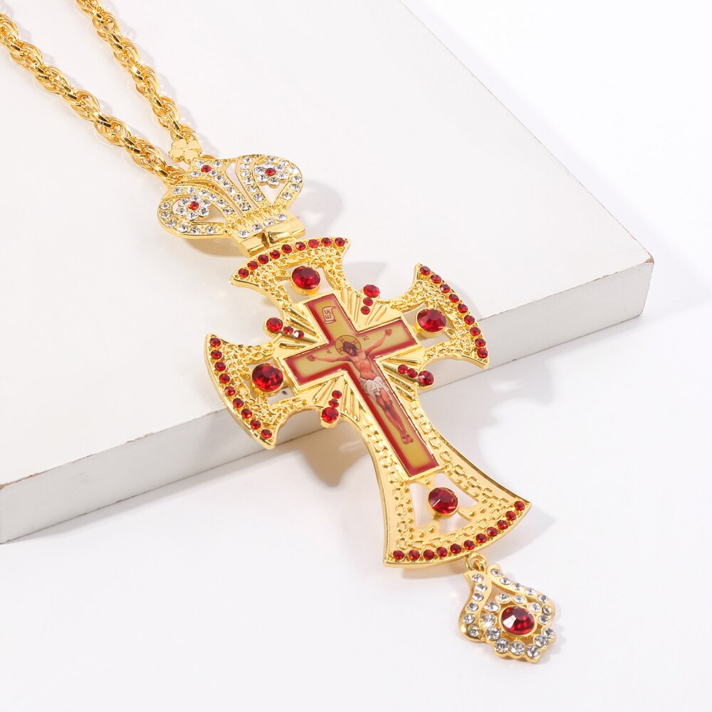 Crown Pectoral Cross Orthodox Jesus Crucifix Necklace Retro Religious crystal necklace Men & women chain Long Necklace with box