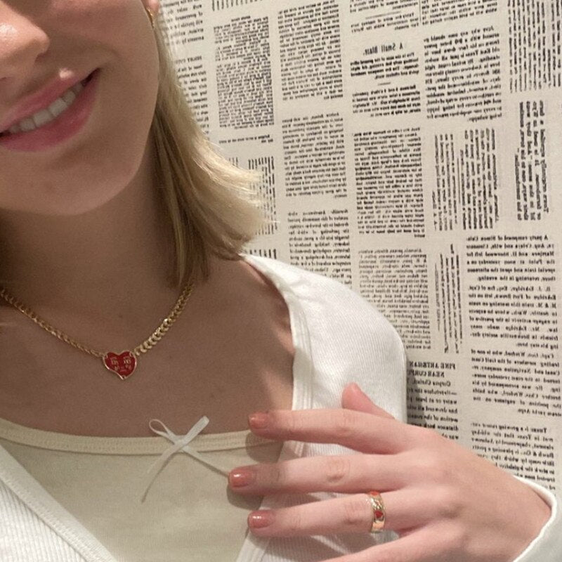 Cry face red heart necklace for women stainless steel cuban link chain necklace y2k necklace cute kawaii 2000s aesthetic jewelry
