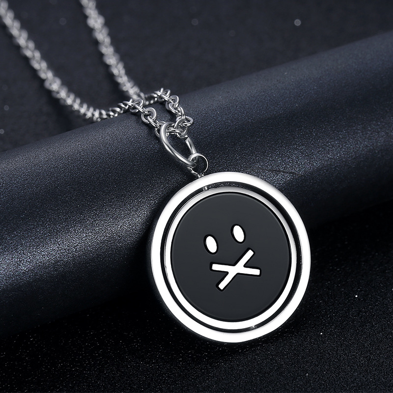 Crying Face Necklace Reversible Hip Hop Pendant Necklaces Girl Jewelry Black Color