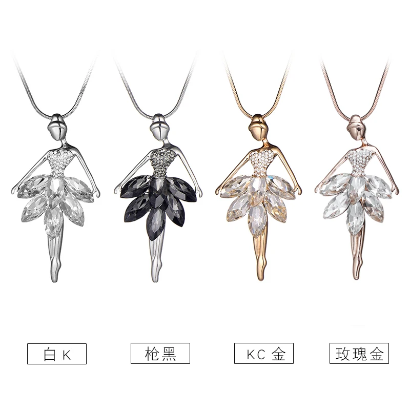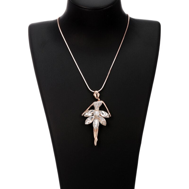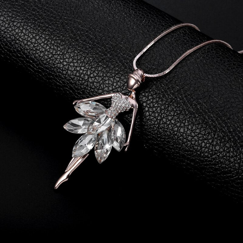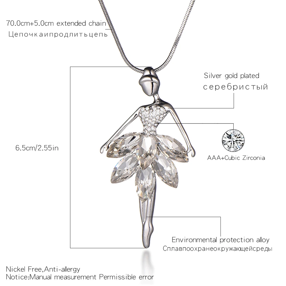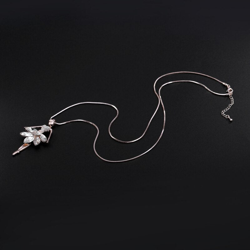 Crystal Dancing Fairy Pendant Necklace for Woman Girls Big Rhinestone Long Chain Sweater Necklaces Jewelry Accessories