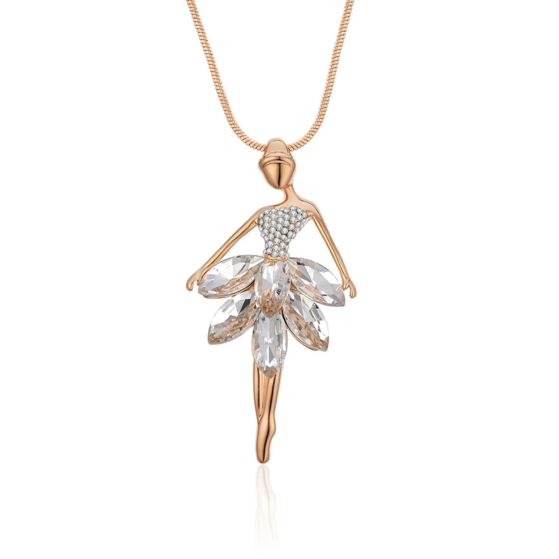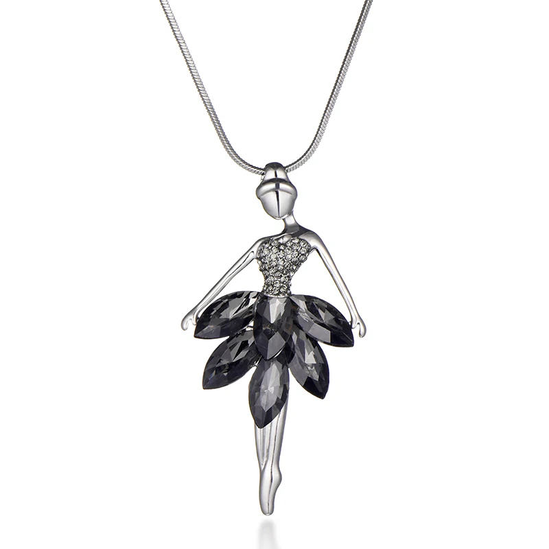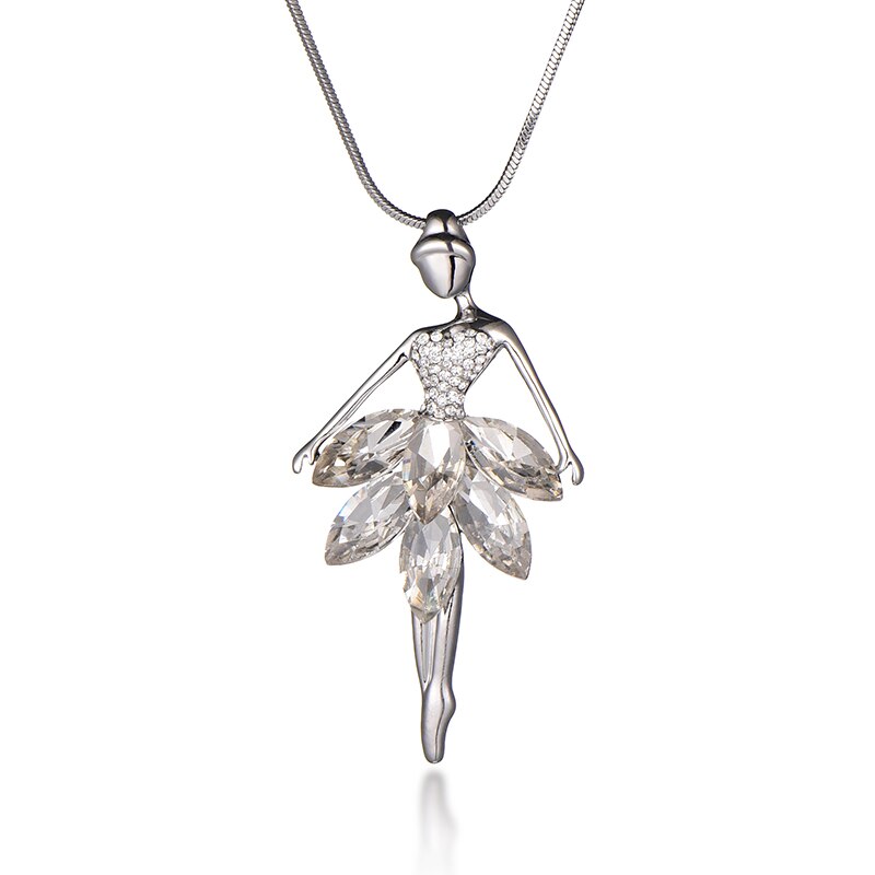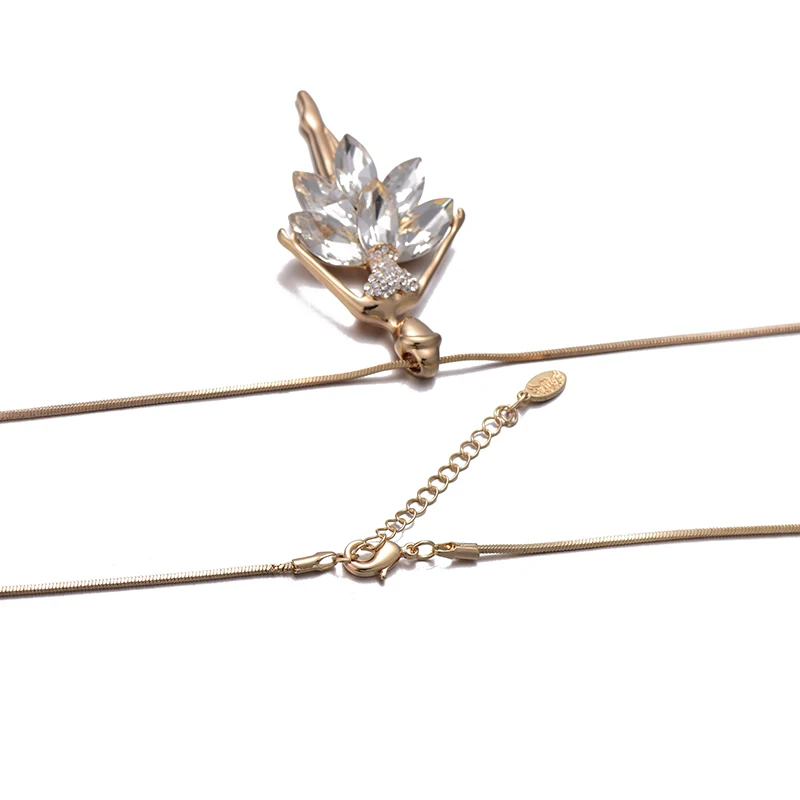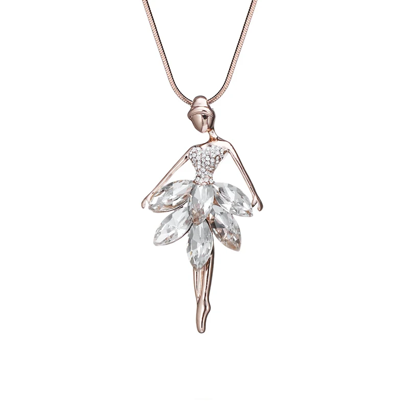 Crystal Dancing Fairy Pendant Necklace for Woman Girls Big Rhinestone Long Chain Sweater Necklaces Jewelry Accessories