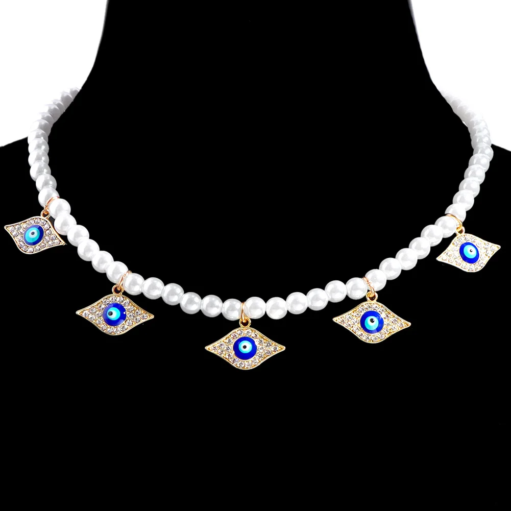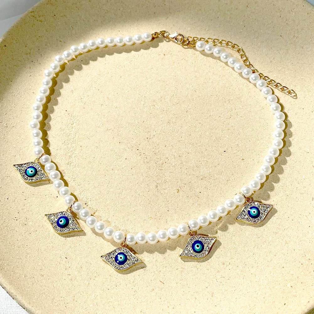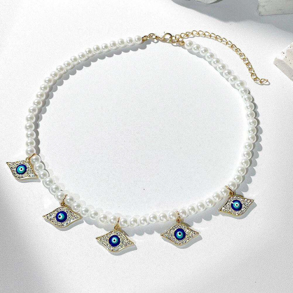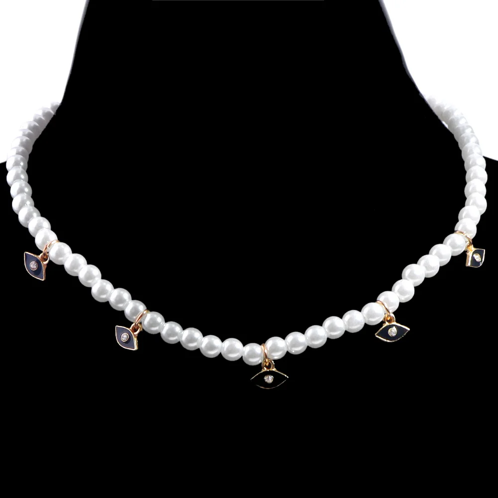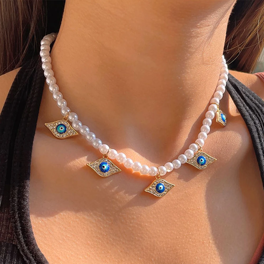 Crystal Evil Eye Pearl Beaded Necklace For Women Geometric Pendant Choker Necklace Boho Jewelry 2022 Trend