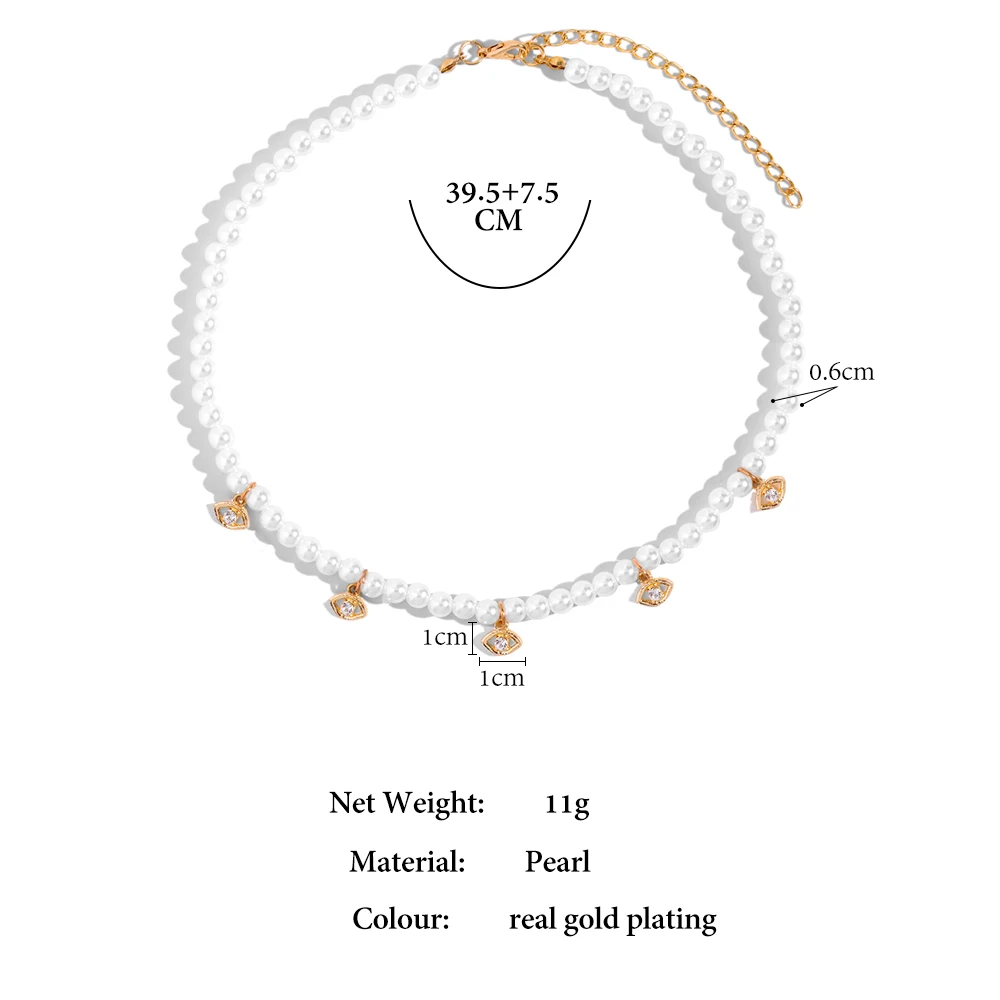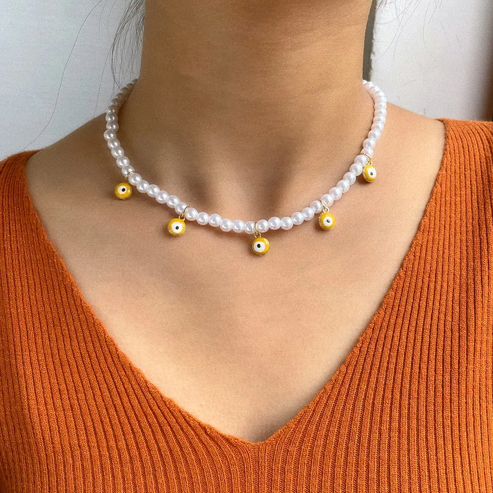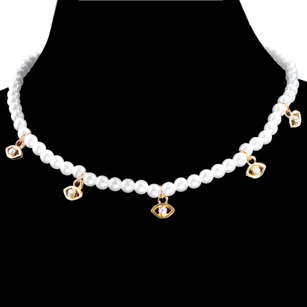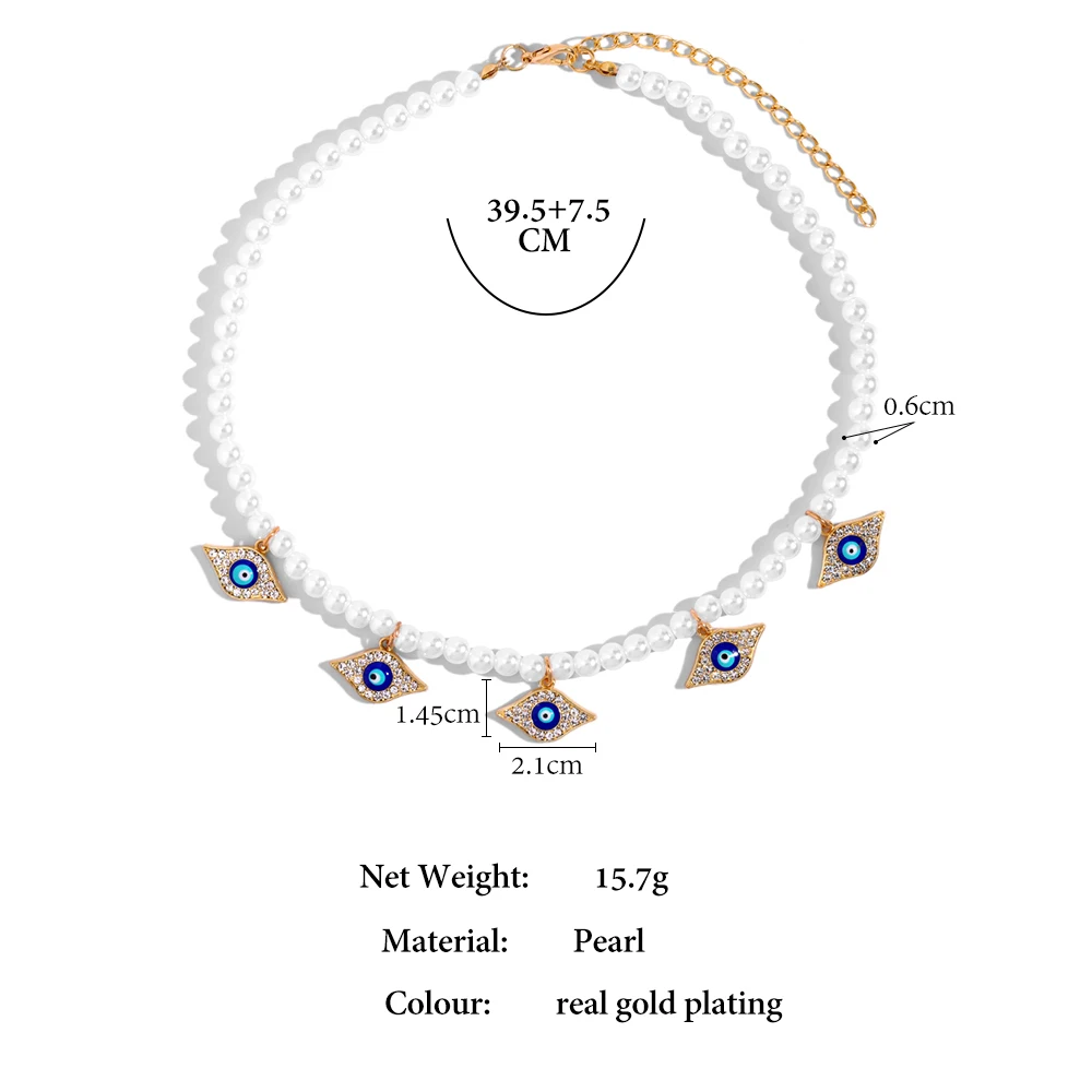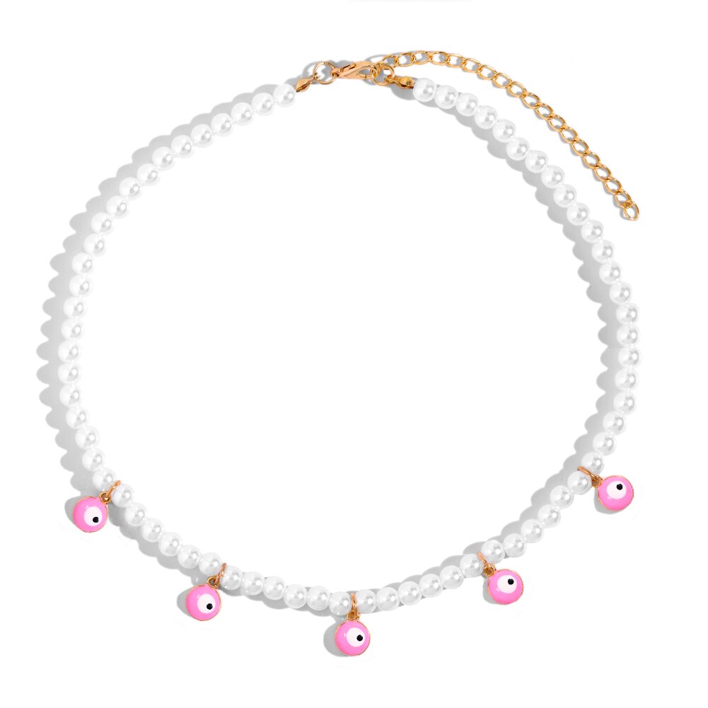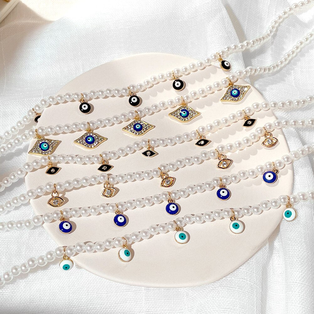 Crystal Evil Eye Pearl Beaded Necklace For Women Geometric Pendant Choker Necklace Boho Jewelry 2022 Trend