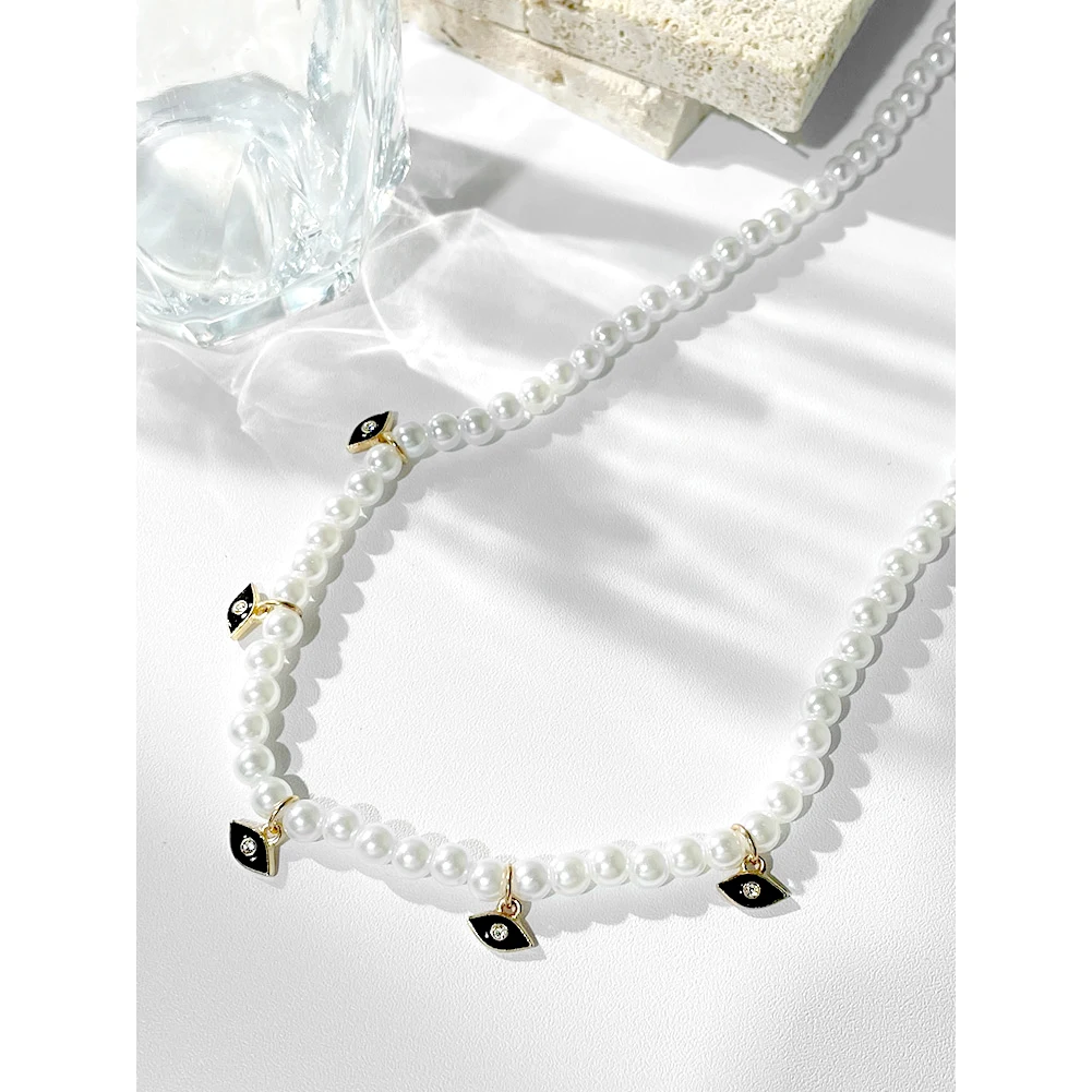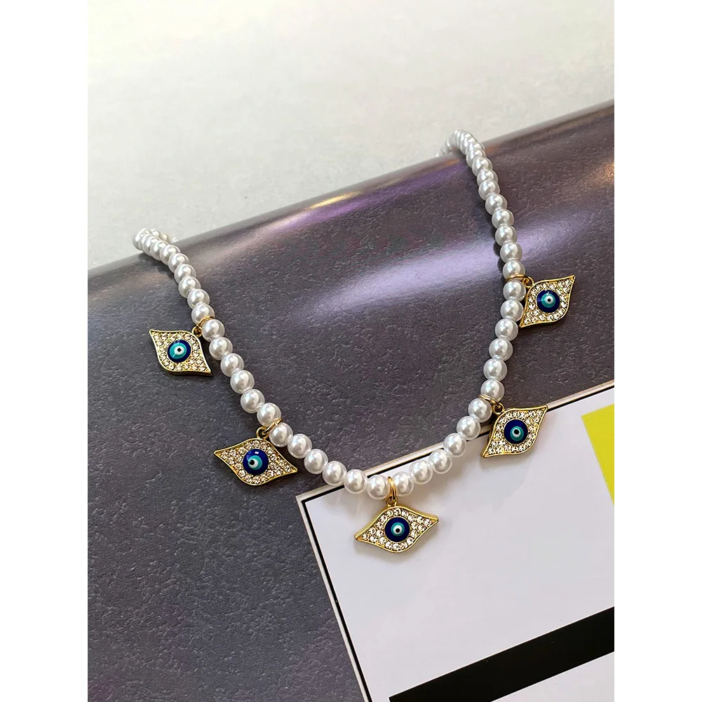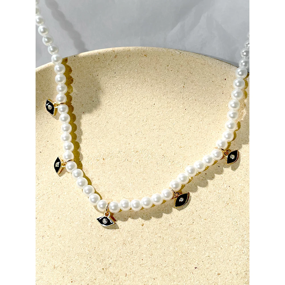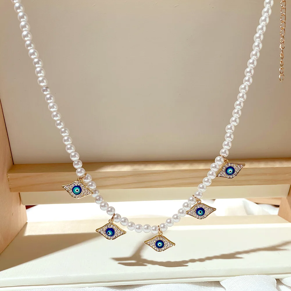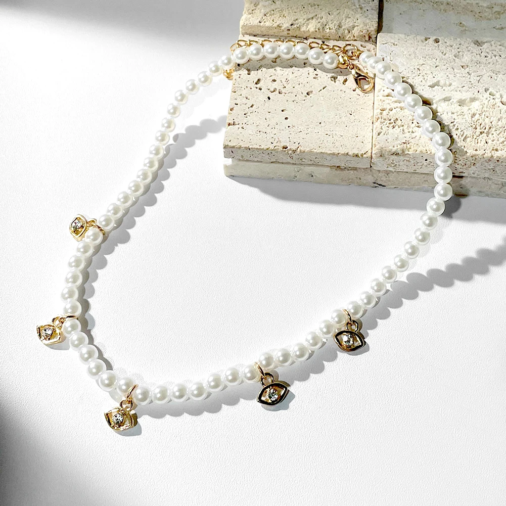Crystal Evil Eye Pearl Beaded Necklace For Women Geometric Pendant Choker Necklace Boho Jewelry 2022 Trend