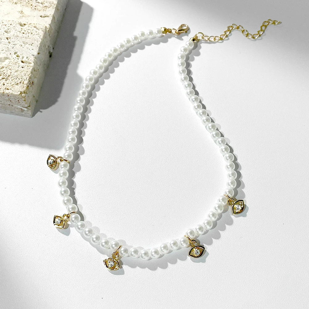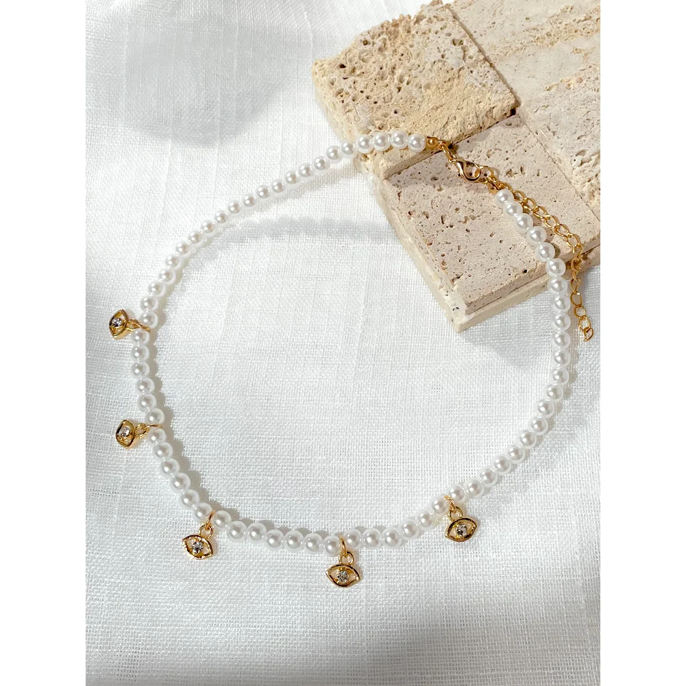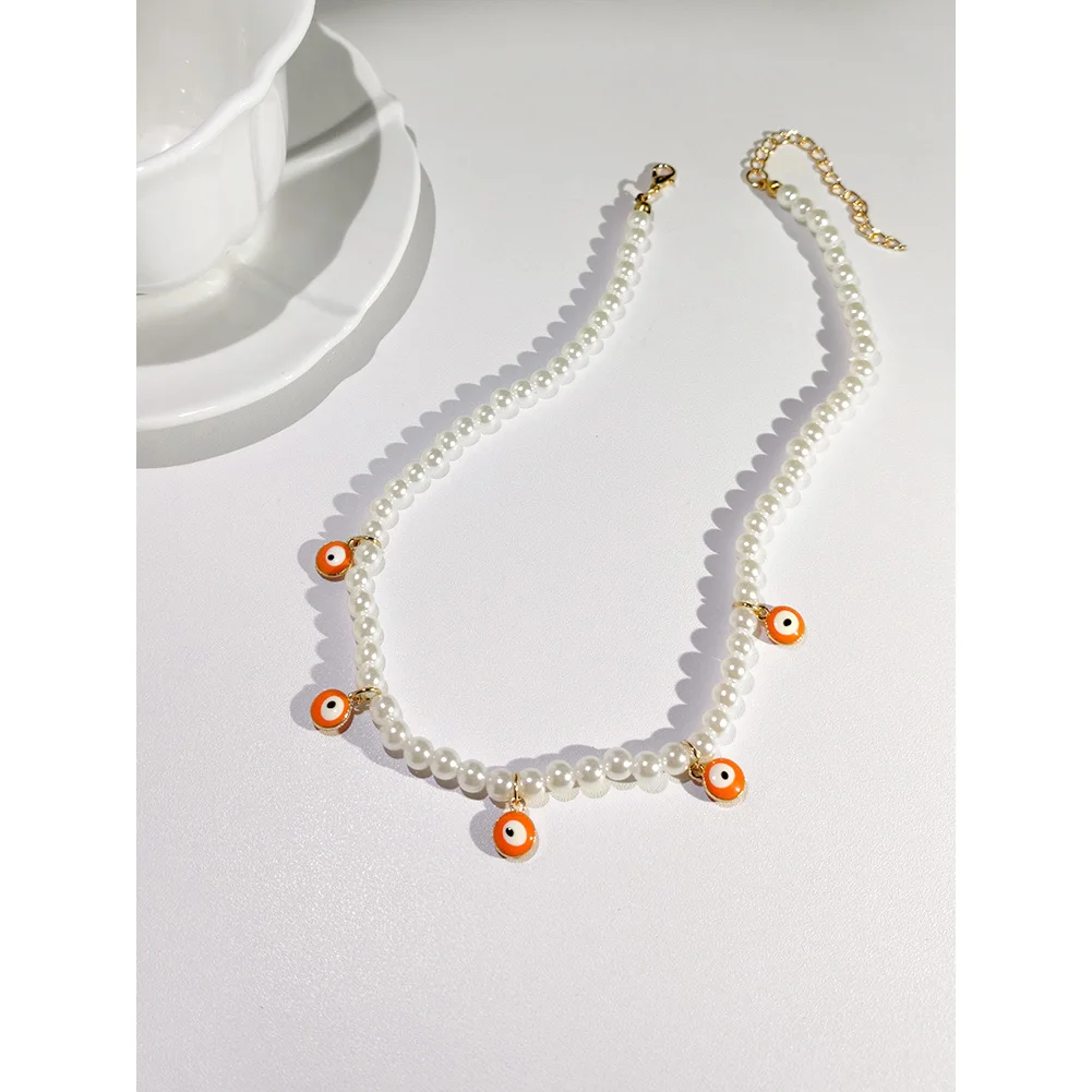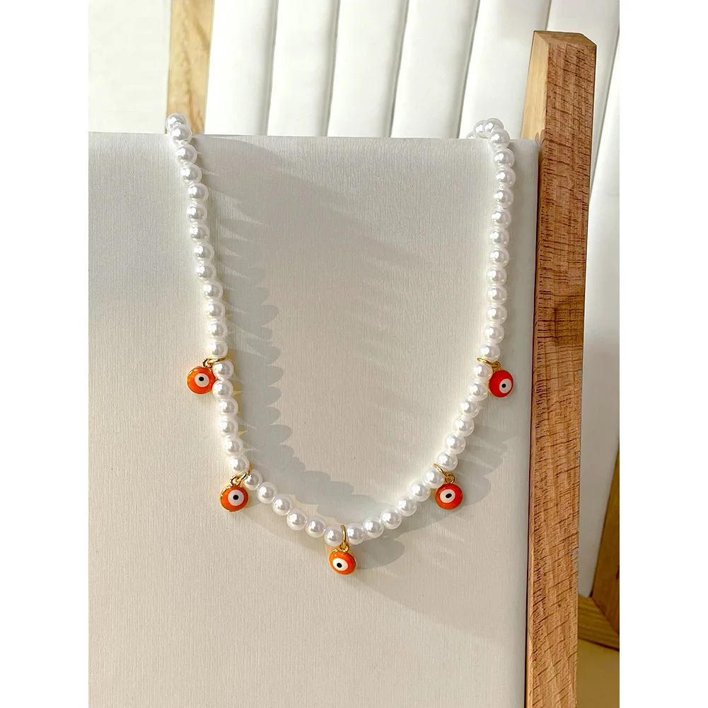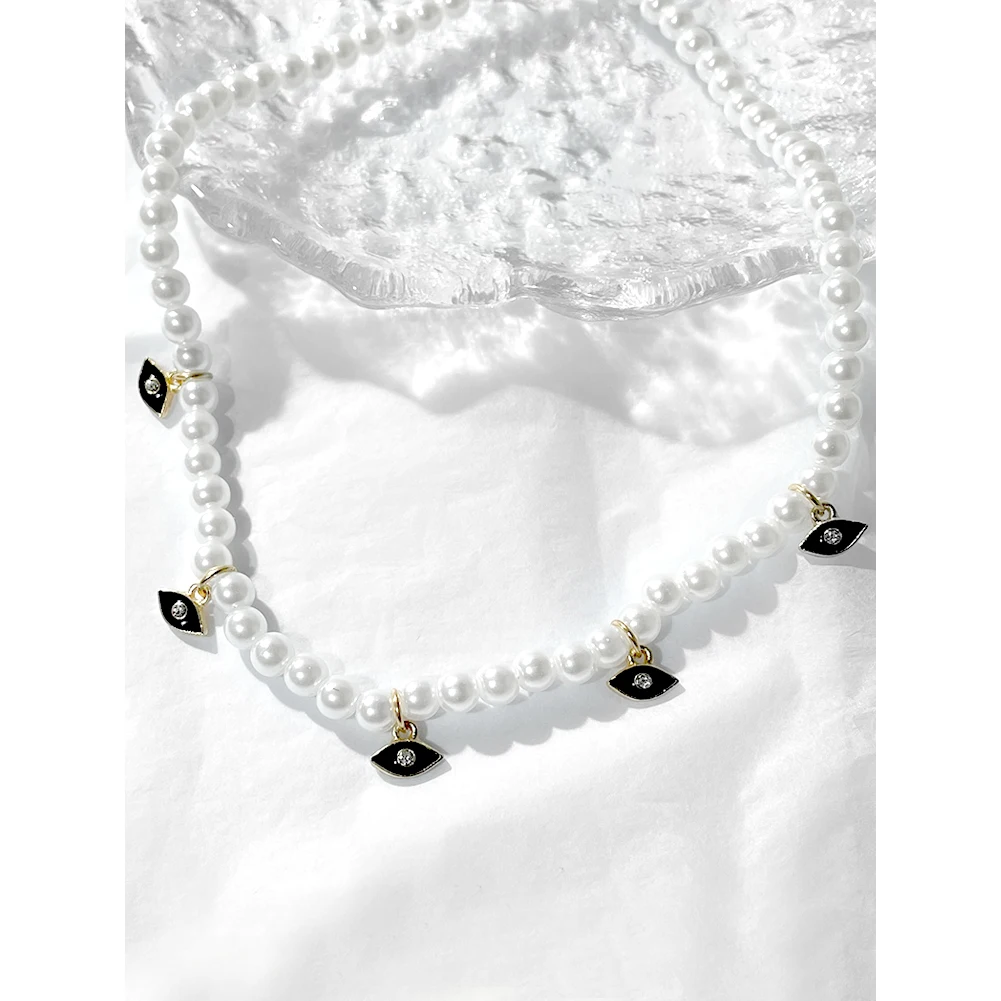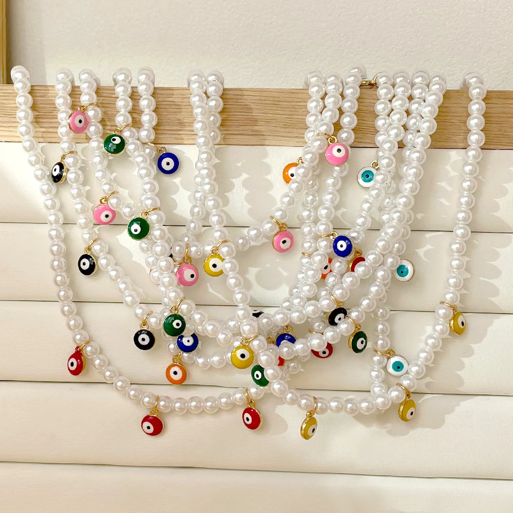 Crystal Evil Eye Pearl Beaded Necklace For Women Geometric Pendant Choker Necklace Boho Jewelry 2022 Trend