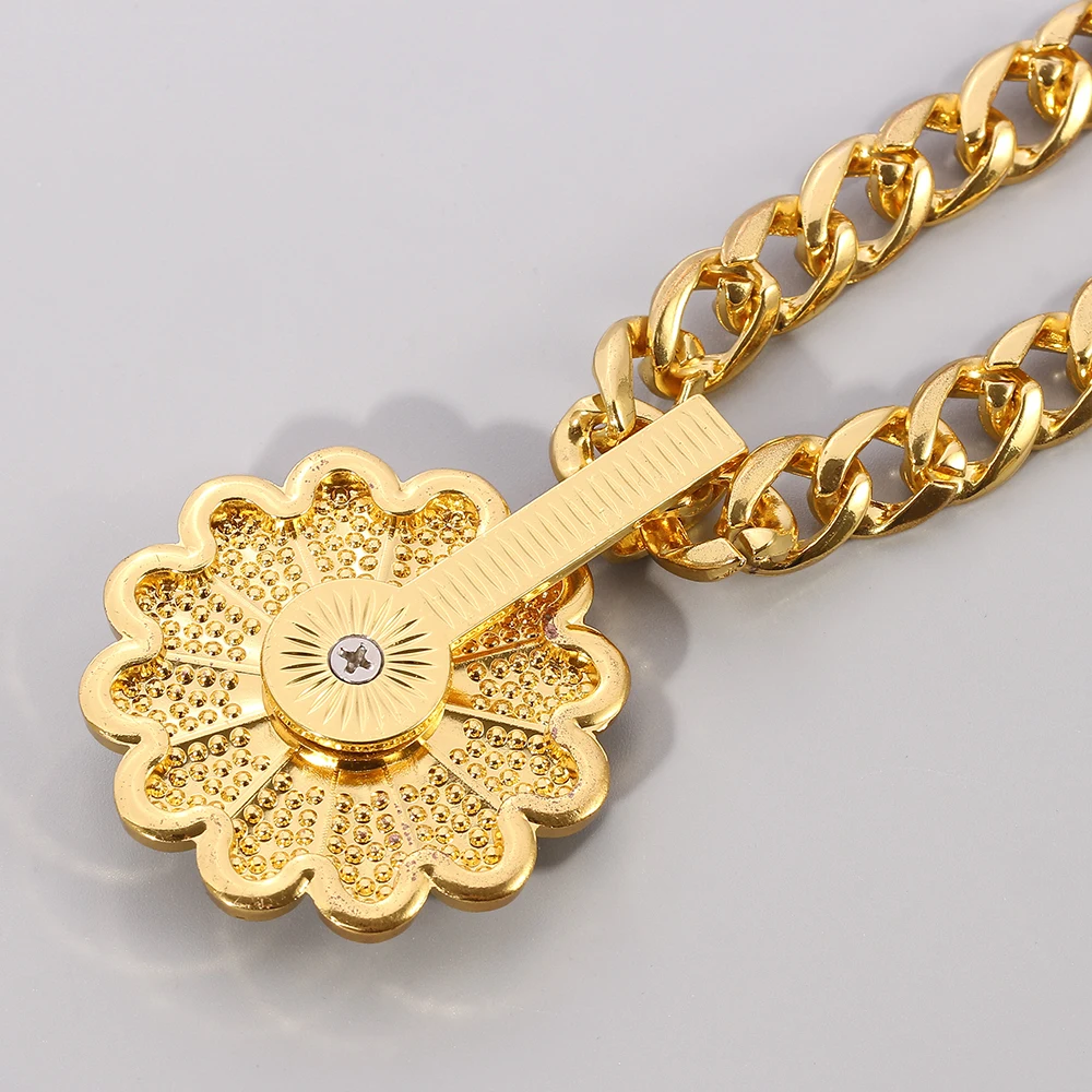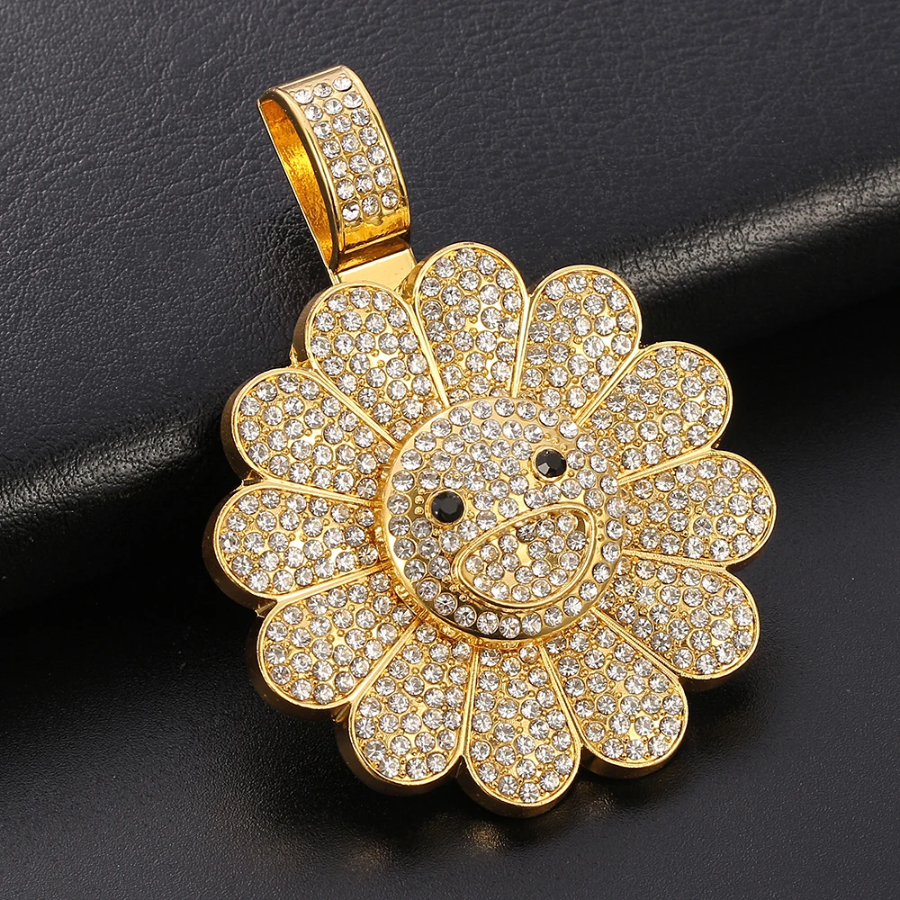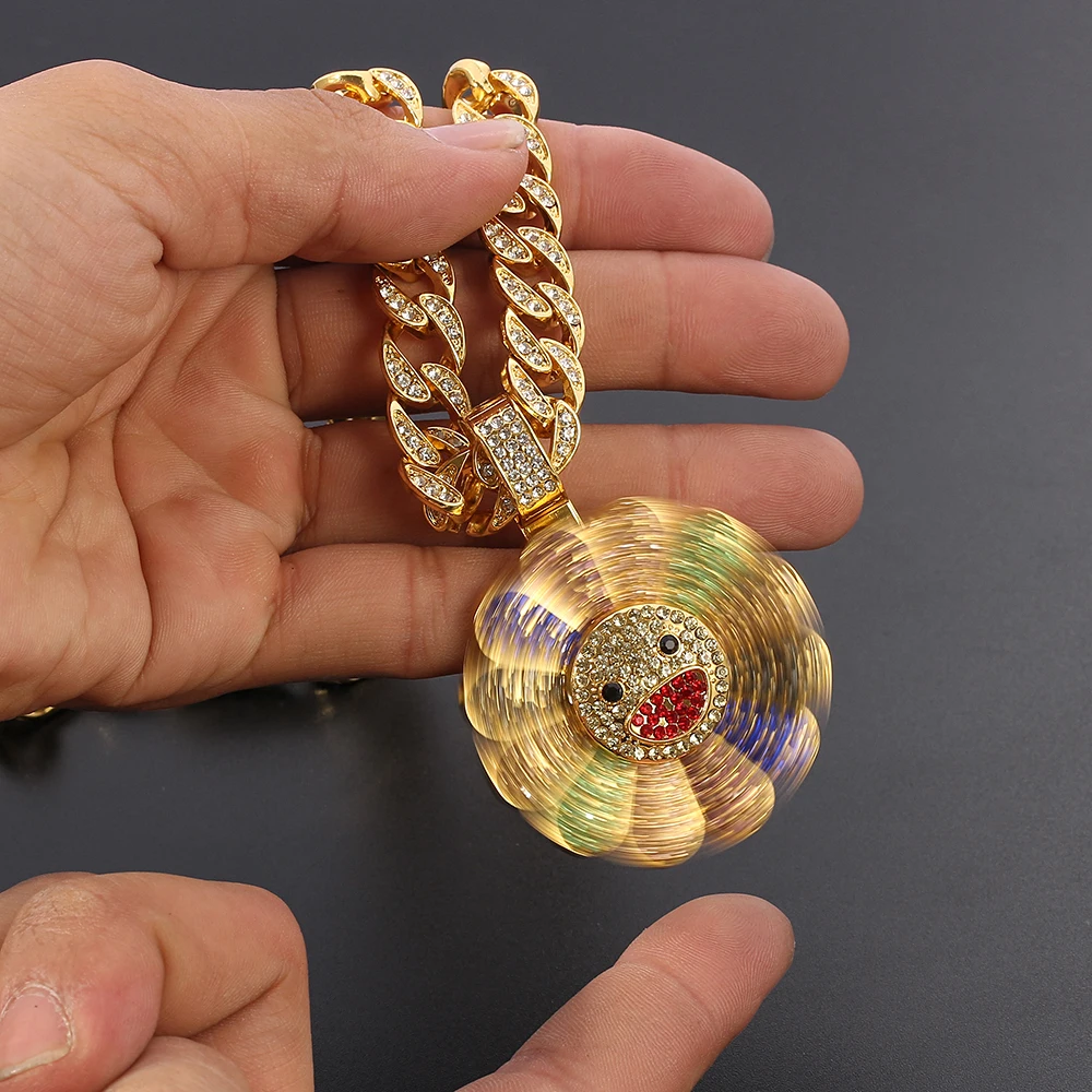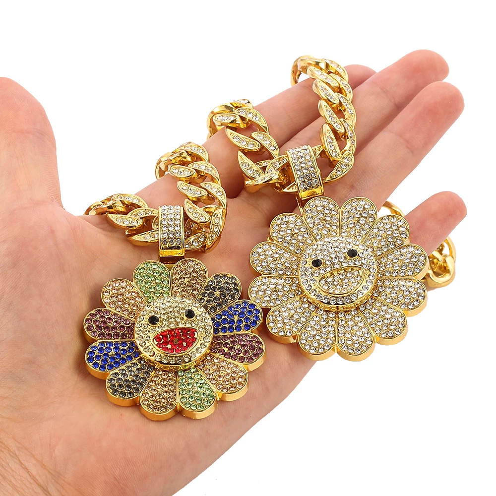 Crystal Hip-hop Sunflower Crystal Can be Rotated Pendant Necklace Rainbow Jewelry Rock Rapper Collar Accessories Gifts