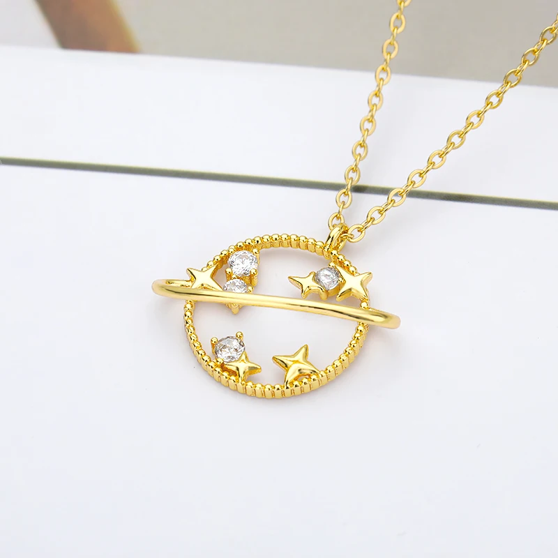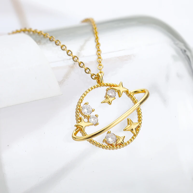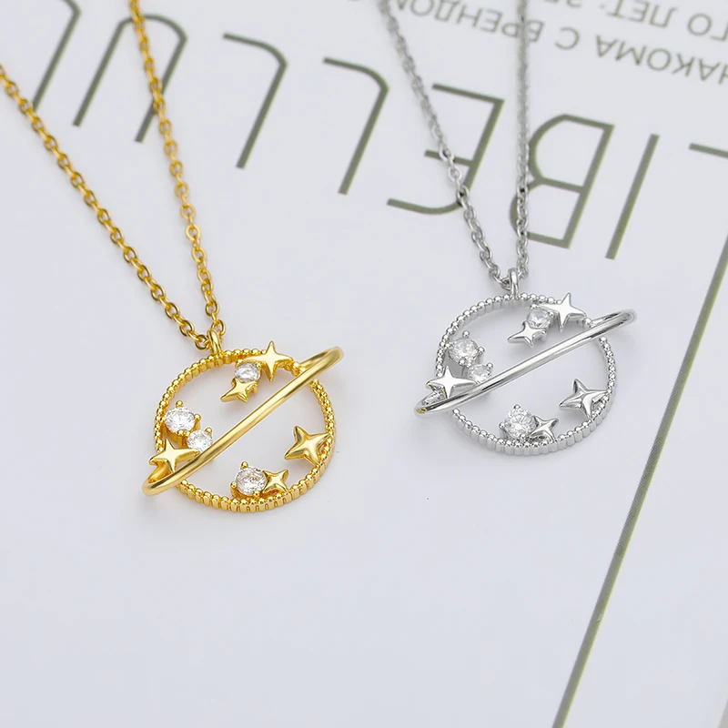 Crystal Hollow Universe Planet Star Pendant Necklace For Women Gold Silver Color Chain Necklaces Collar Collier Jewelry Gift