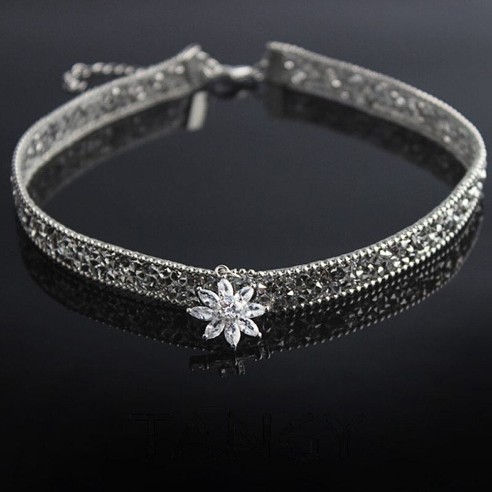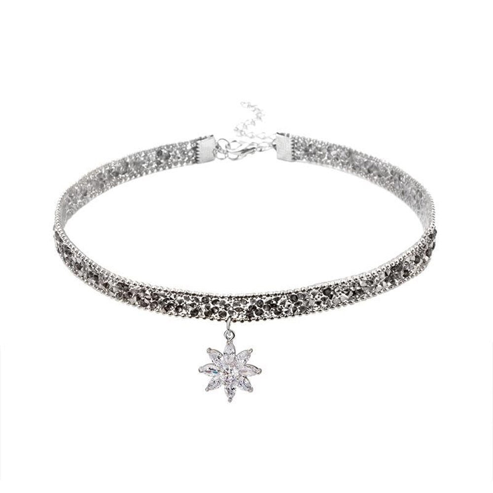 Crystal Ice Flower Pendant Necklace Glitter Adjustable Metal Chain Women Chic Punk Choker Clavicle Chain Neck Jewelry