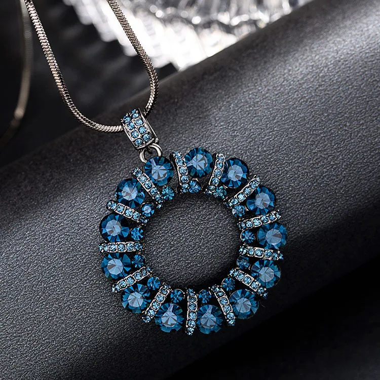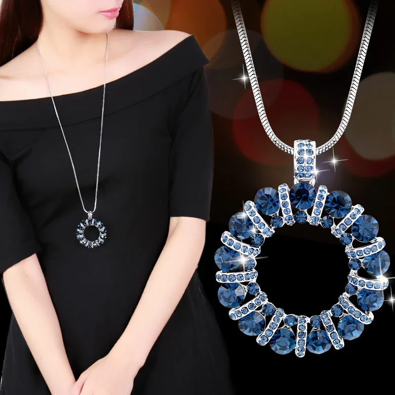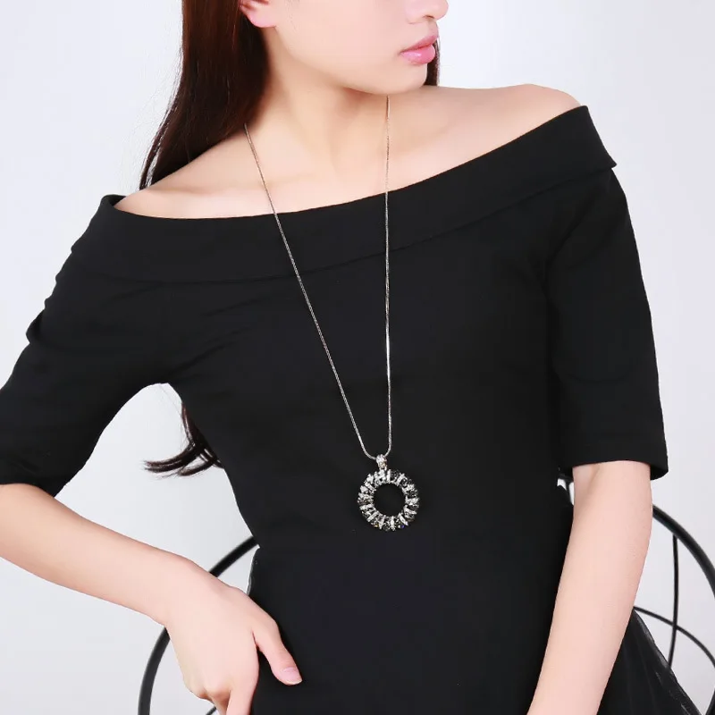 Crystal Round Circle Pendant Long Necklace For Women 2022 Trendy Jewelry Sweater Necklaces