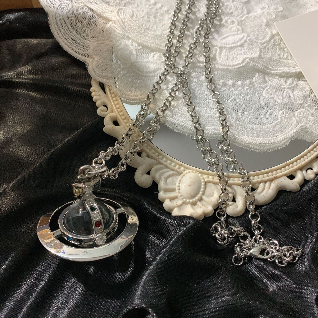 Crystal Saturn Necklace for Women Wedding Jewelry Ins Style Sweater Chain Chain for Girls Jewelry Gifts