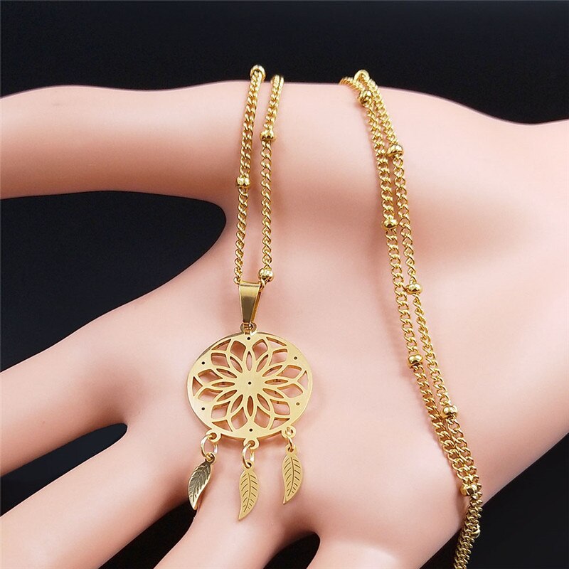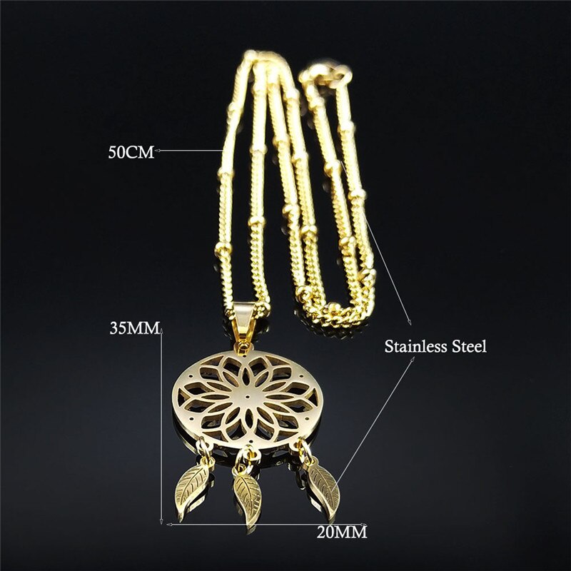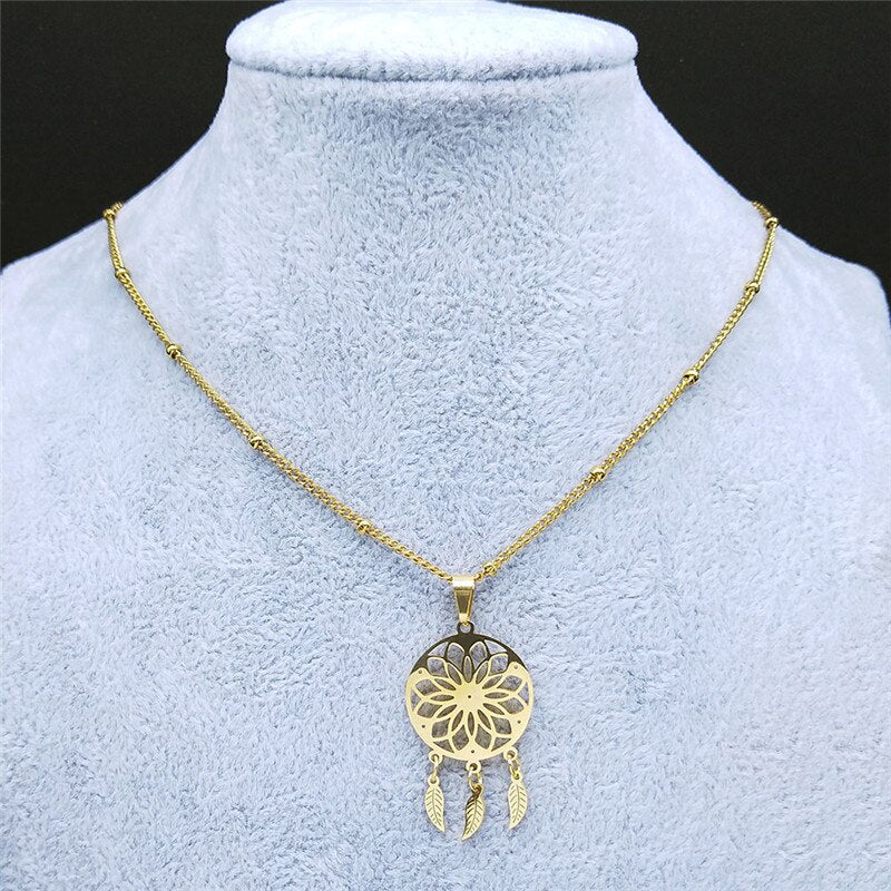 Crystal Stainless Steel Dreamcatcher Necklace Women Flower of Life Bohemia Charm Necklaces Boho Jewelry colgante N8010S05