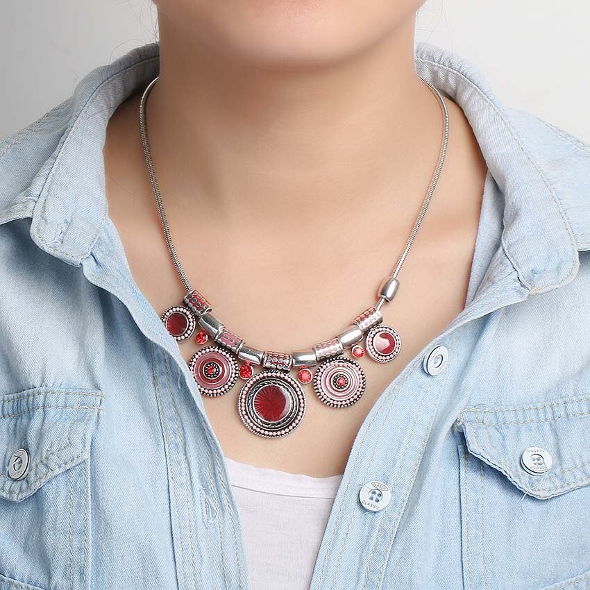 Crystal Zircon Resin Beads Choker Necklaces For Women Retro Alloy Chain Punk Bohemia Ethnic Female Statement Necklace