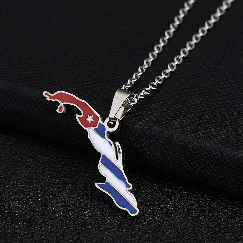 Cuba Map Flag Pendant Necklaces for Women,Map of Cuban Charm Silver Color/Gold Color Ethnic wind Stainless steel Jewelry Gifts