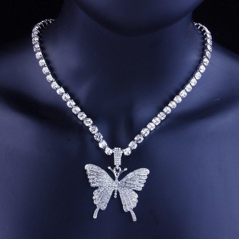 Cuban Chain Blink Butterfly Necklace Choker Hip Hop Punk Jewelry Gold Silver Plated Rhinestone 2021 Trendy Jewelry For Women