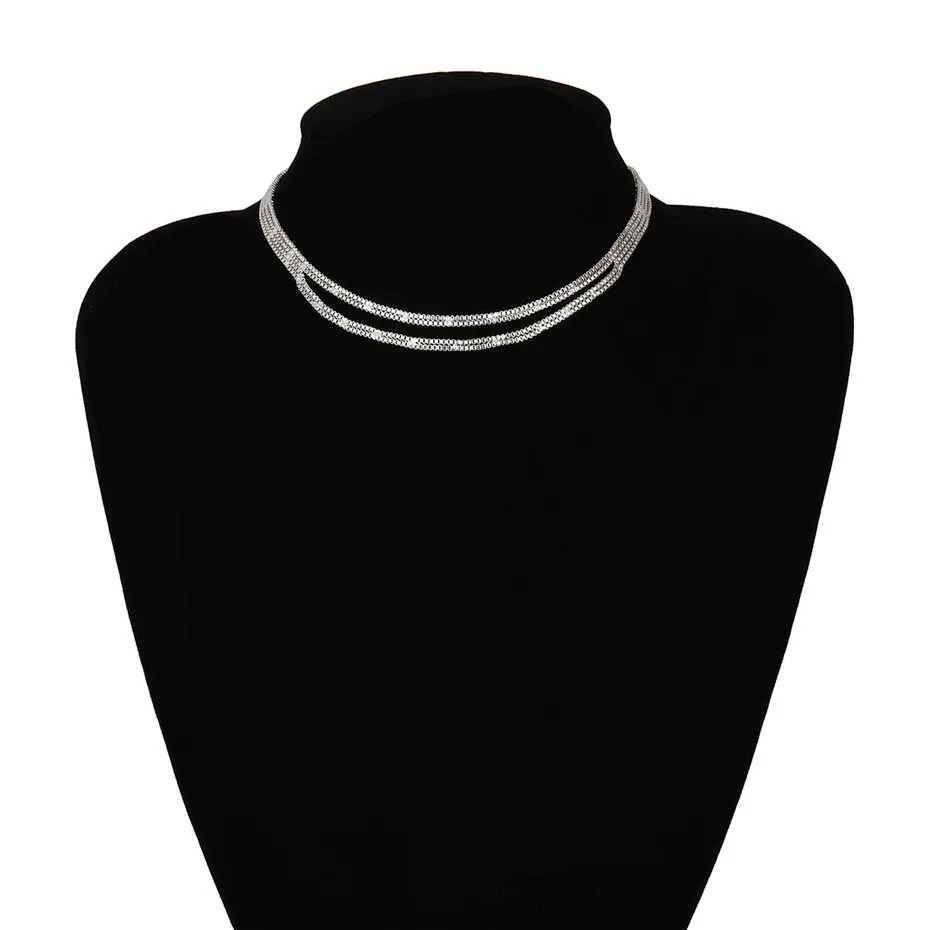 Cuban Double Layered Choker Necklace Minimalist Hip Hop Iron Chain Necklace for Women Men Steampunk Jewelry