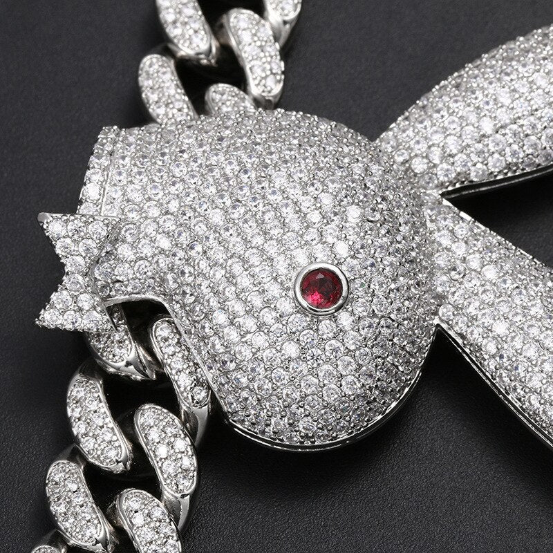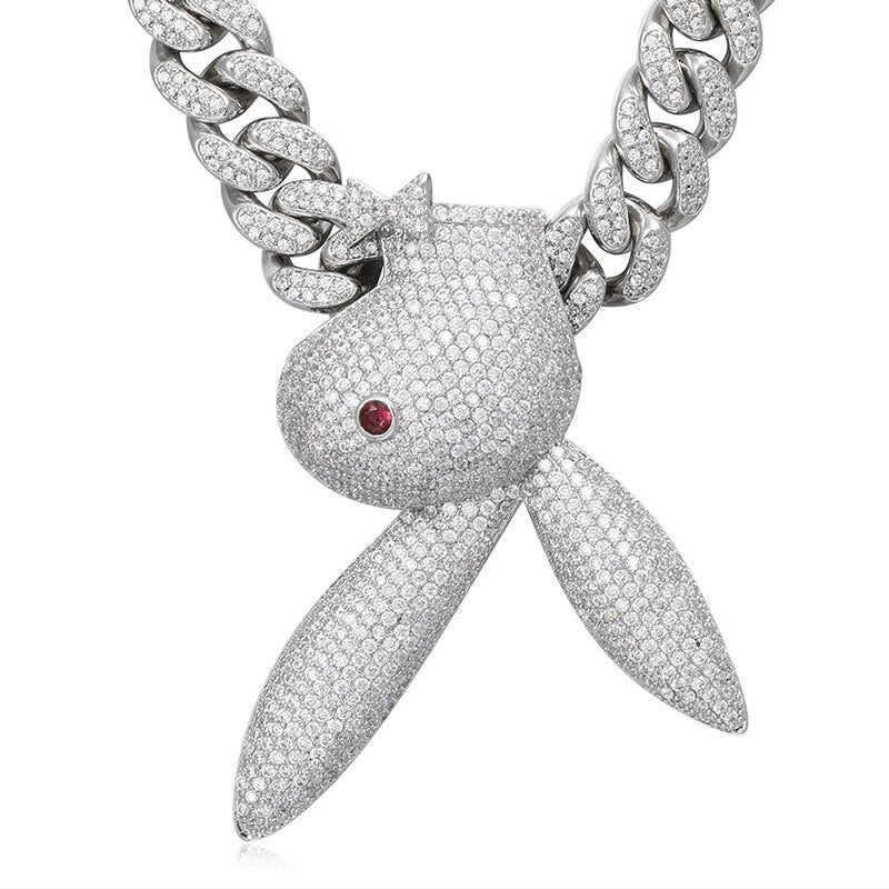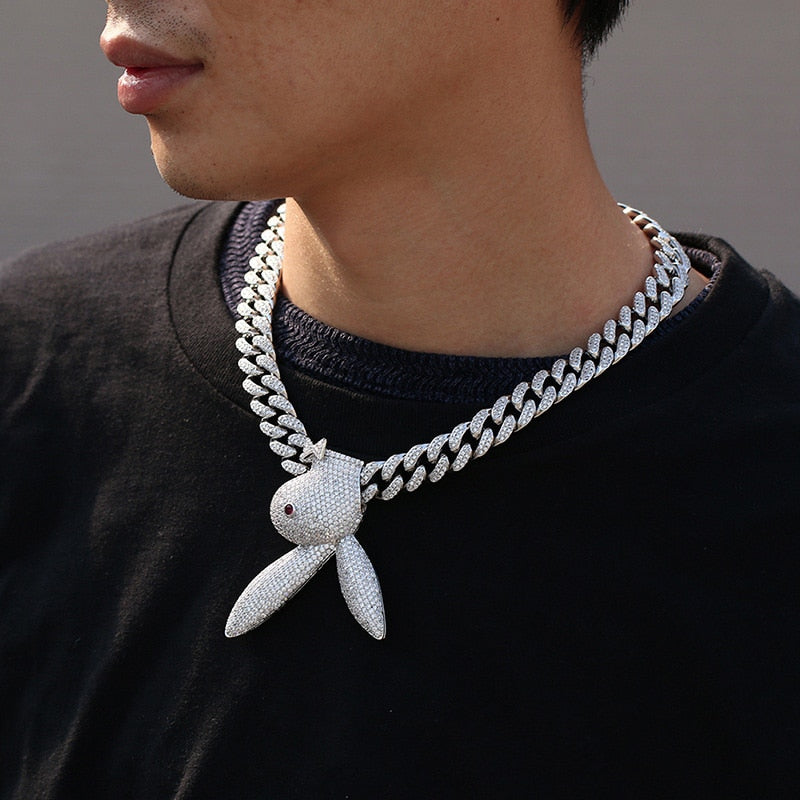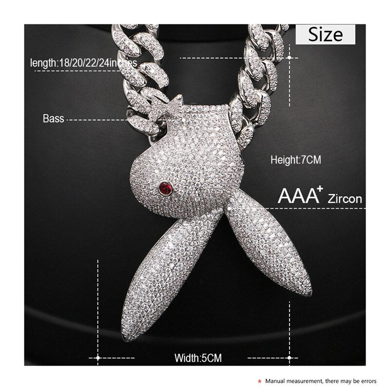 Cuban link Chain Big Rabbit Head Hip hop Pendant & Chain Necklace Full Iced Out Cubic Zircon Bling for Men hip hop Jewelry