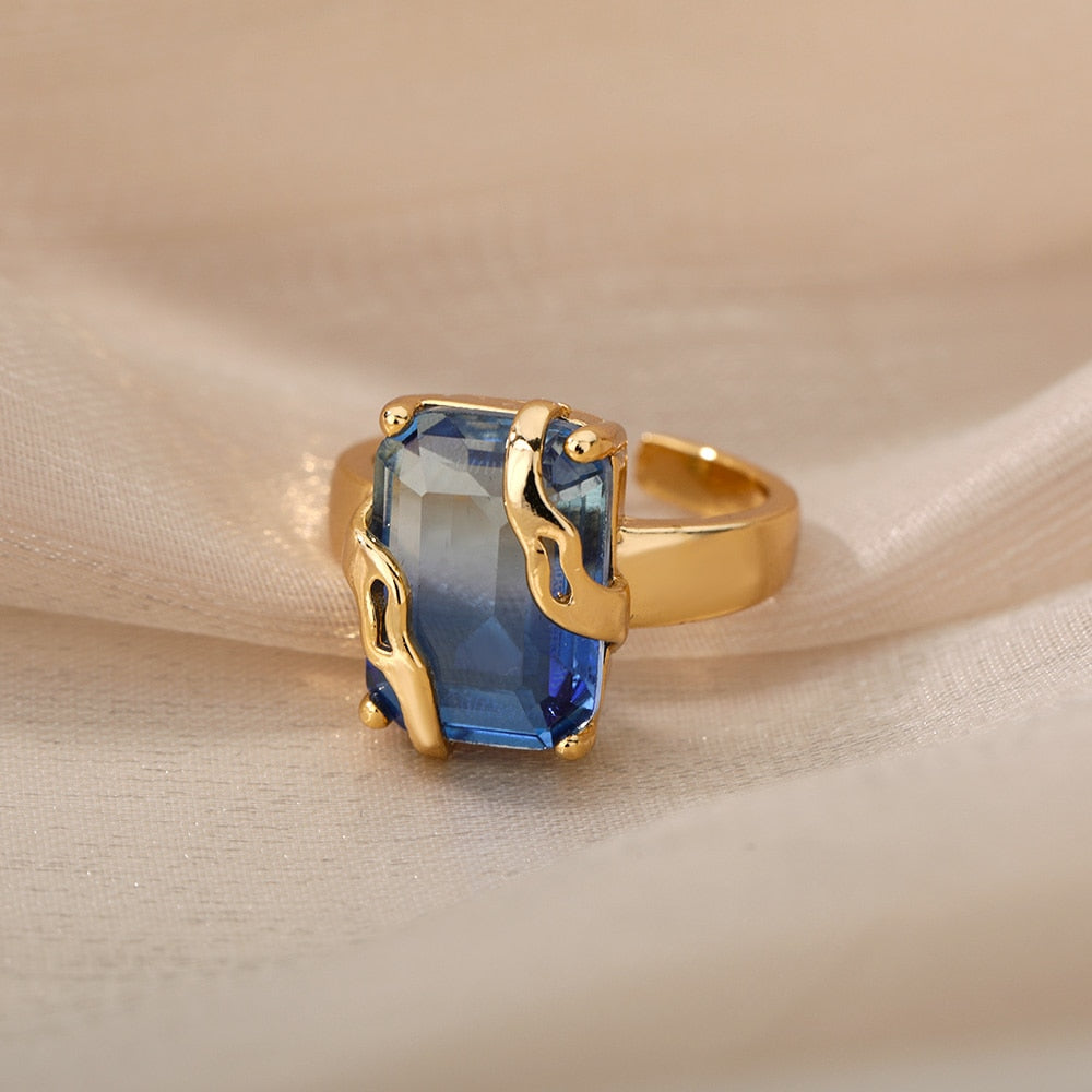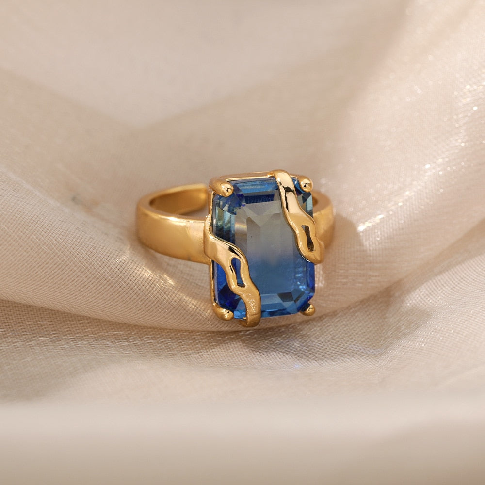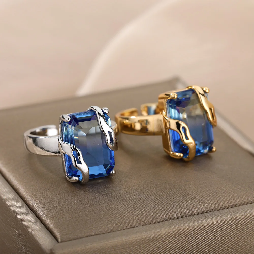 Cubic Zirconia Rings for Women Adjustable Open Blue Crystal Finger Ring Couple Wedding Band Aesthetic Jewelry anillos