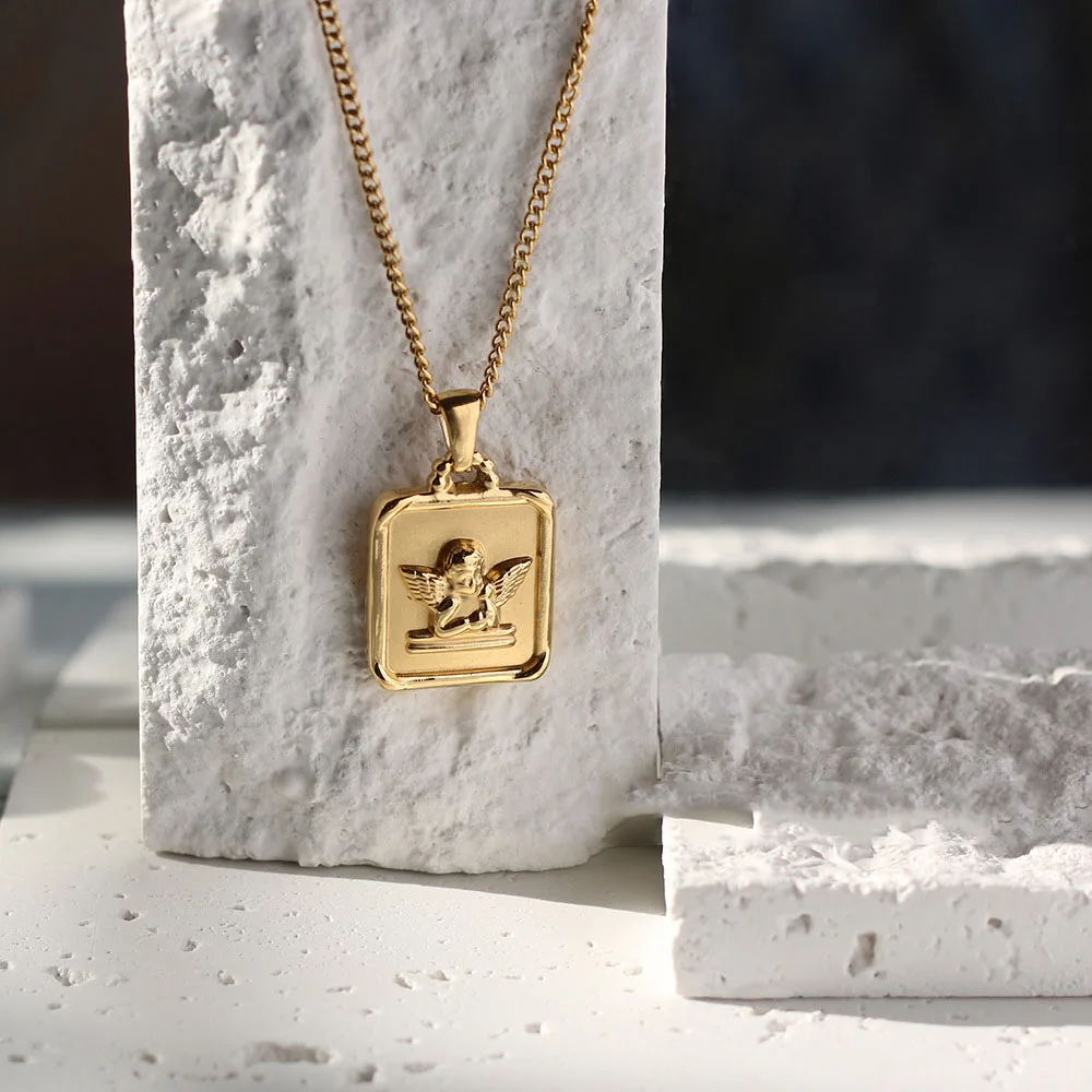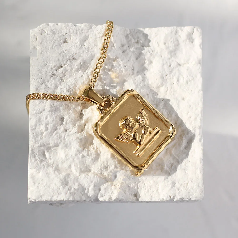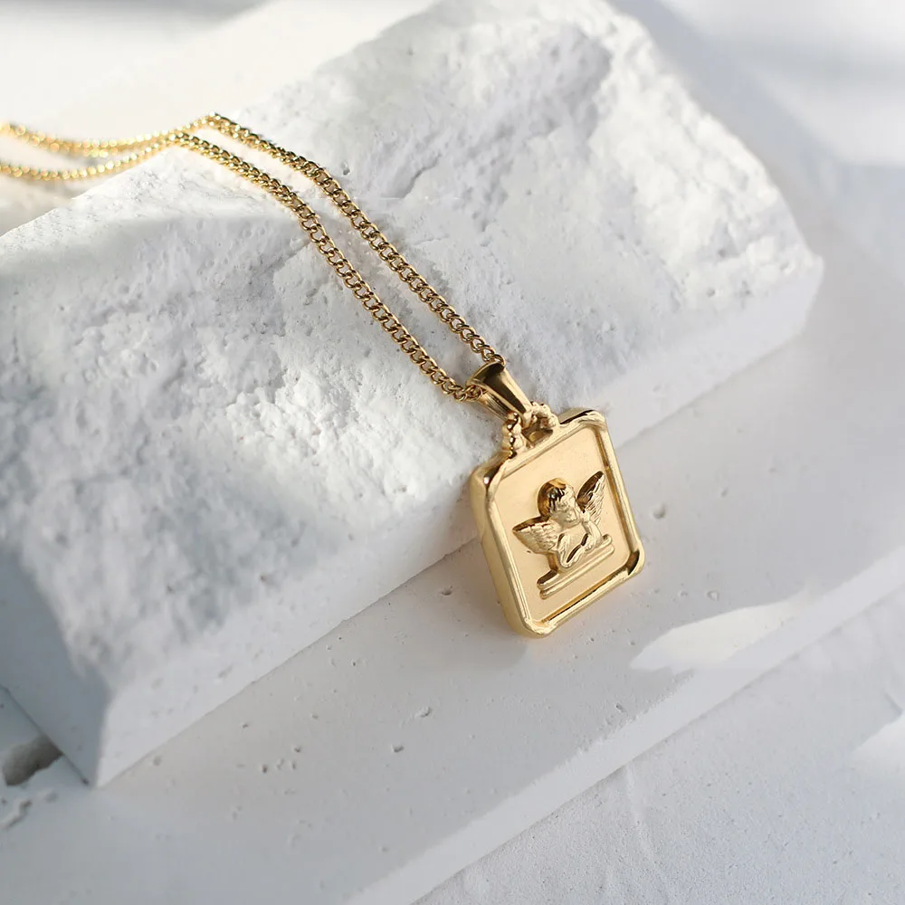 Cupid angel Square pendant necklace for women stainless steel necklace 2022 vintage jewelry tarnish dropship