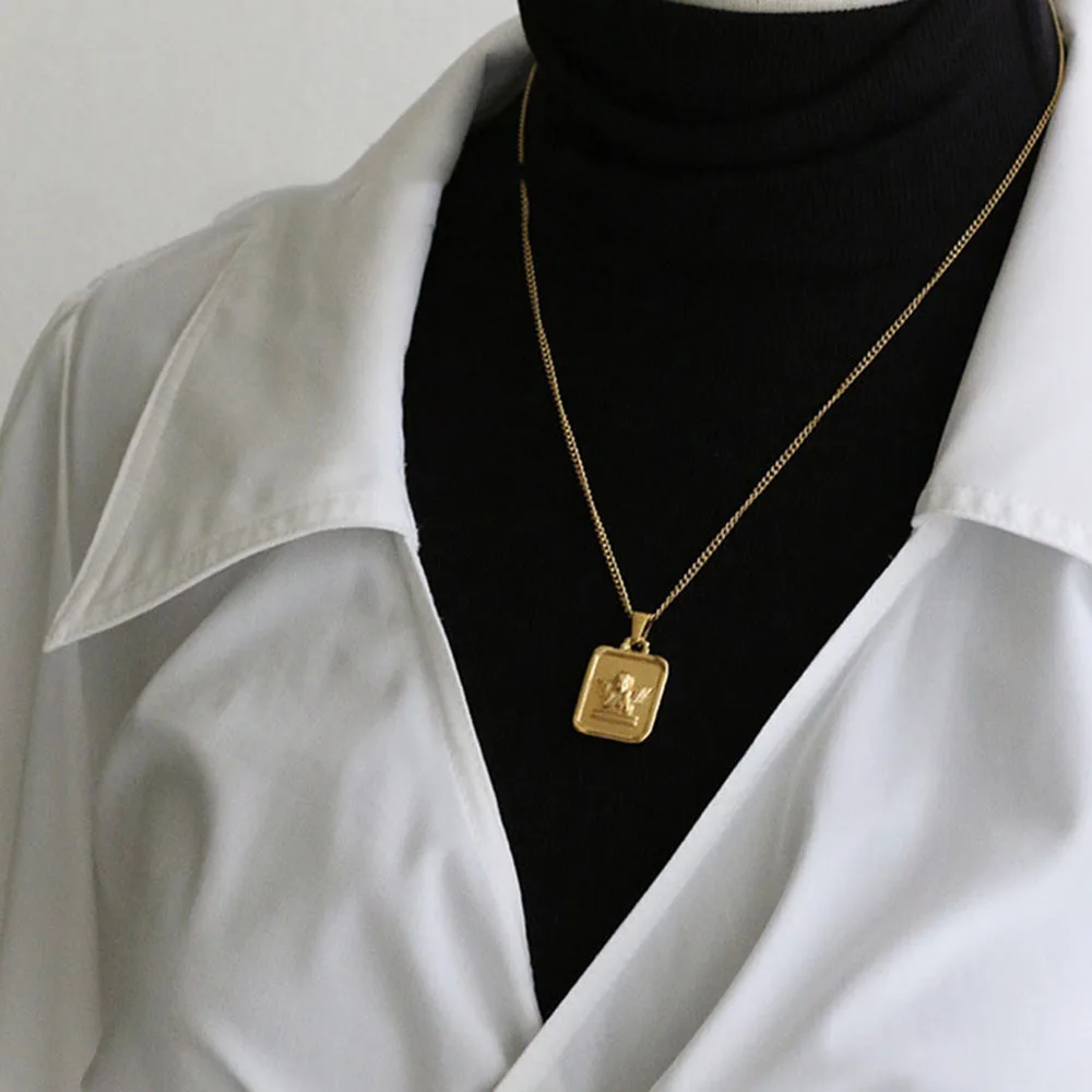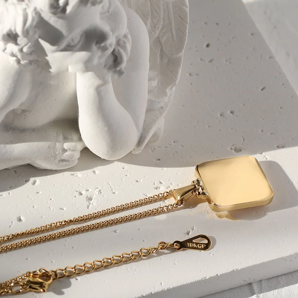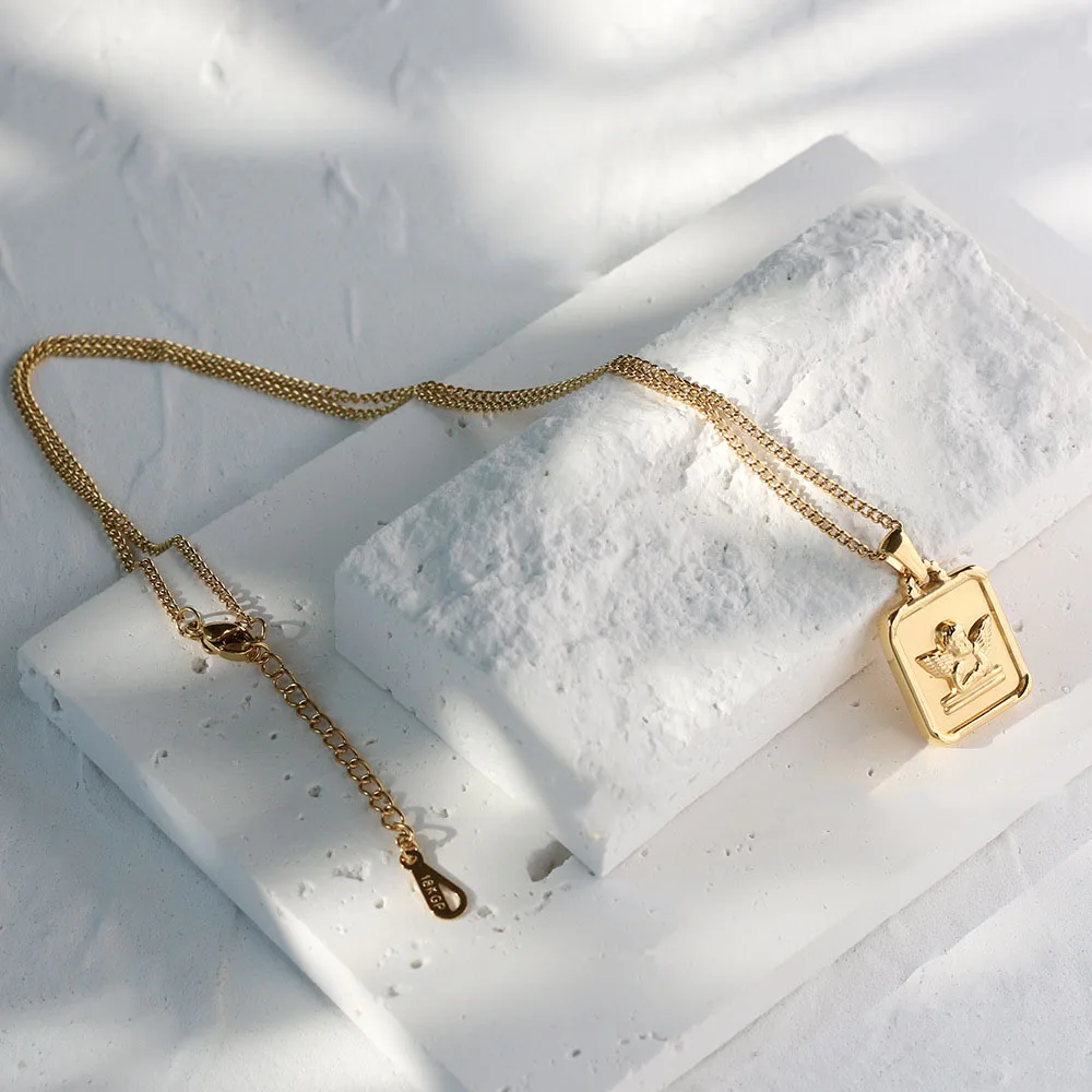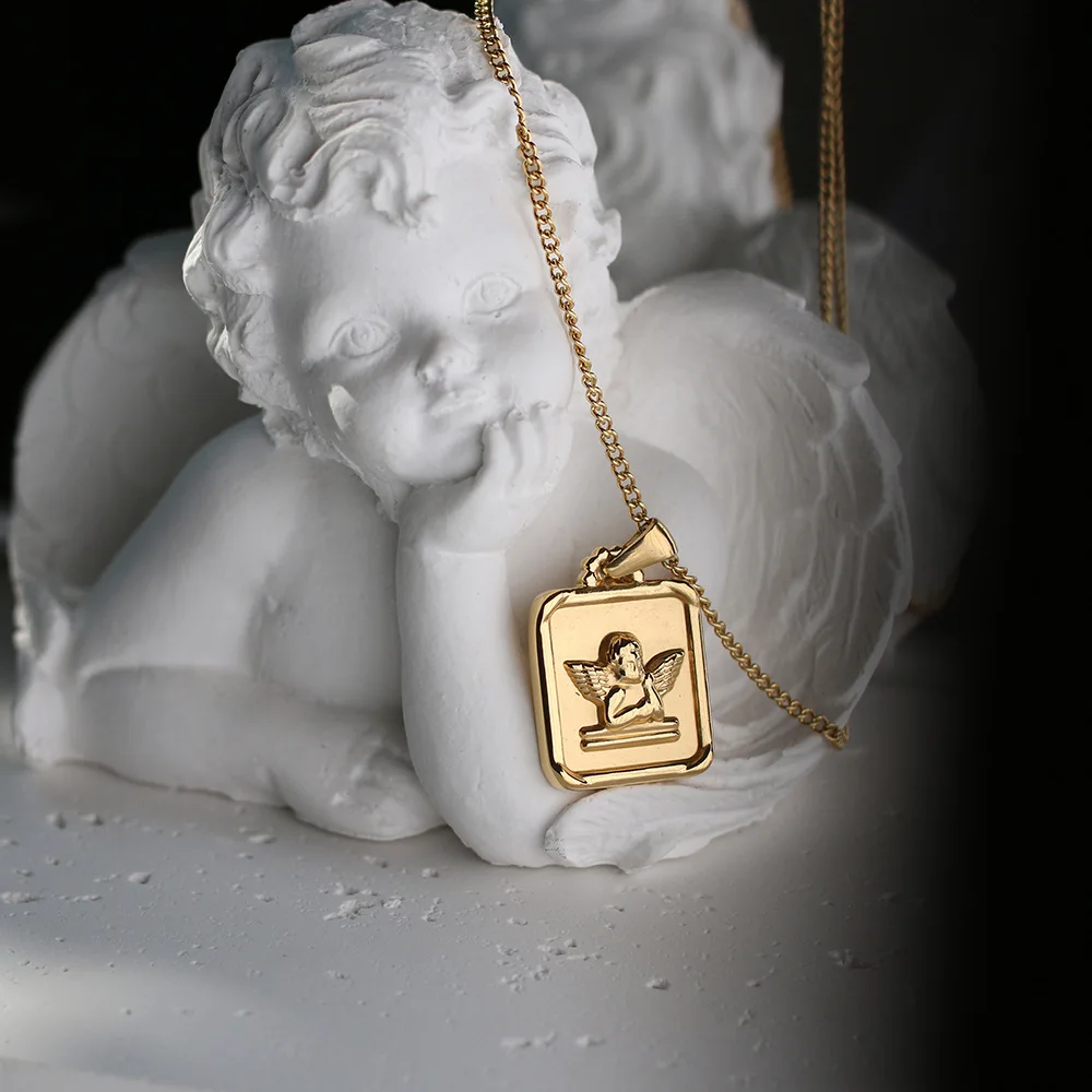 Cupid angel Square pendant necklace for women stainless steel necklace 2022 vintage jewelry tarnish dropship