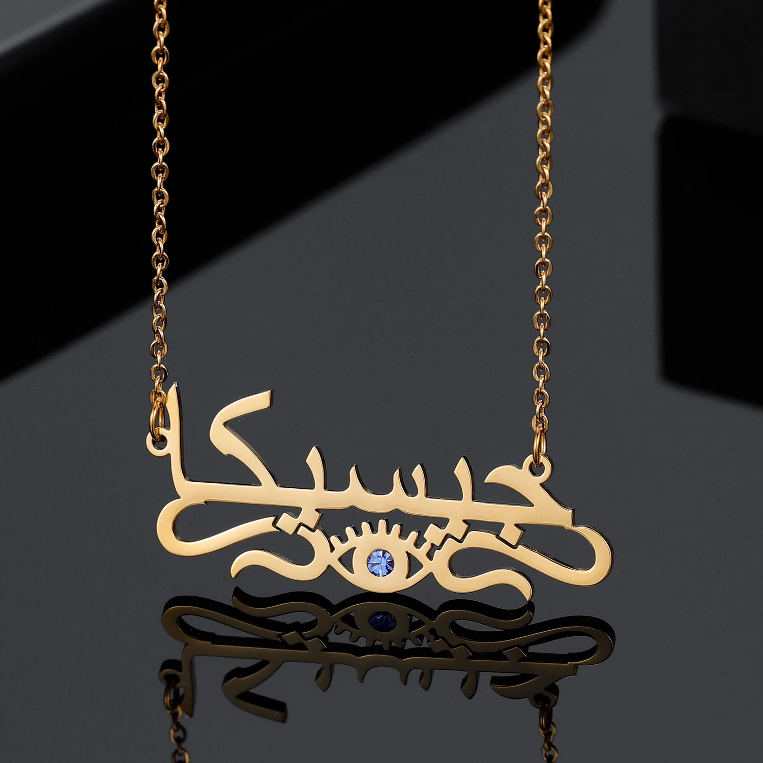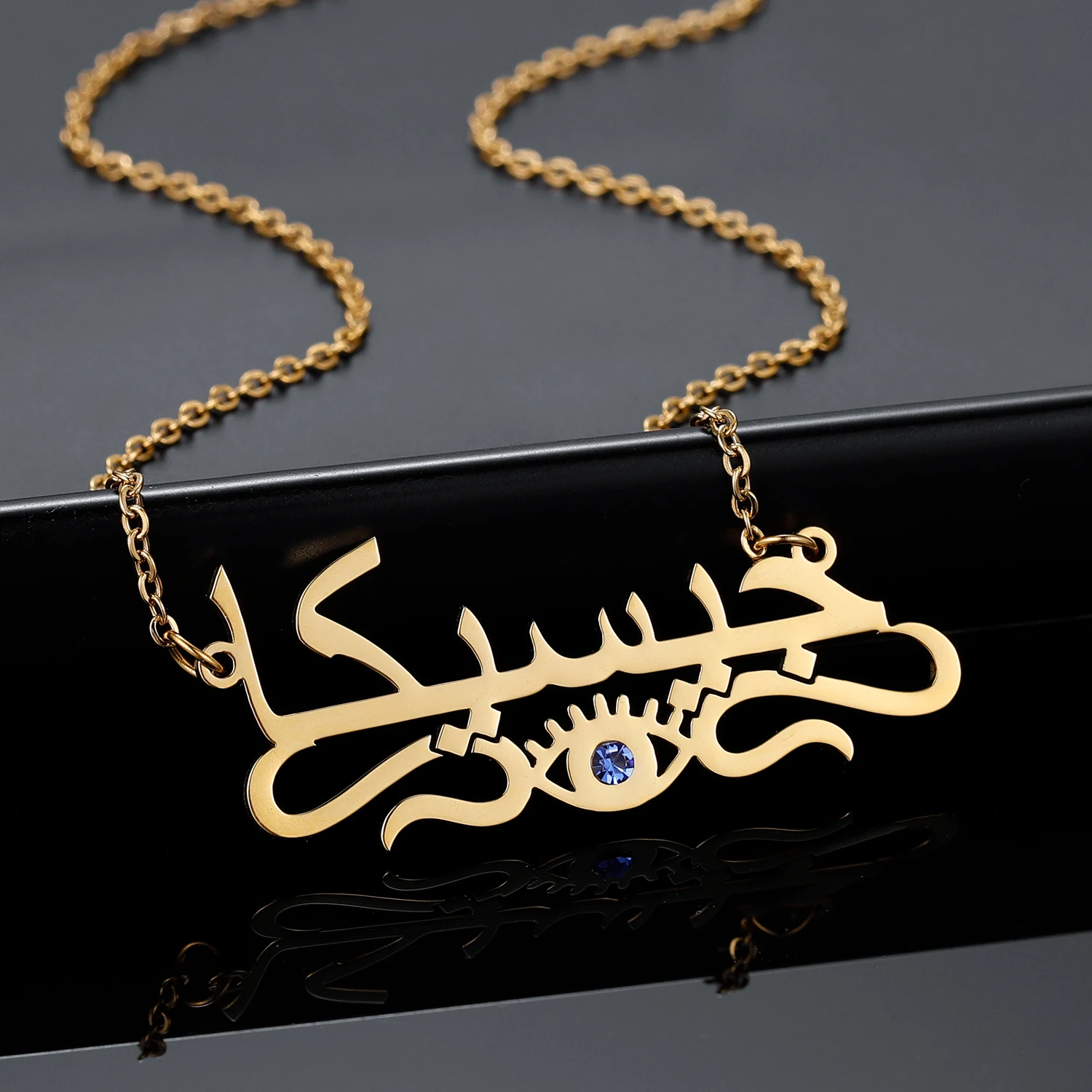 Custom Demon Eye Necklace Personalized Arabic Name Pendant Stainless Steel Jewelry Gold Chain For Women Gift Halloween Gift