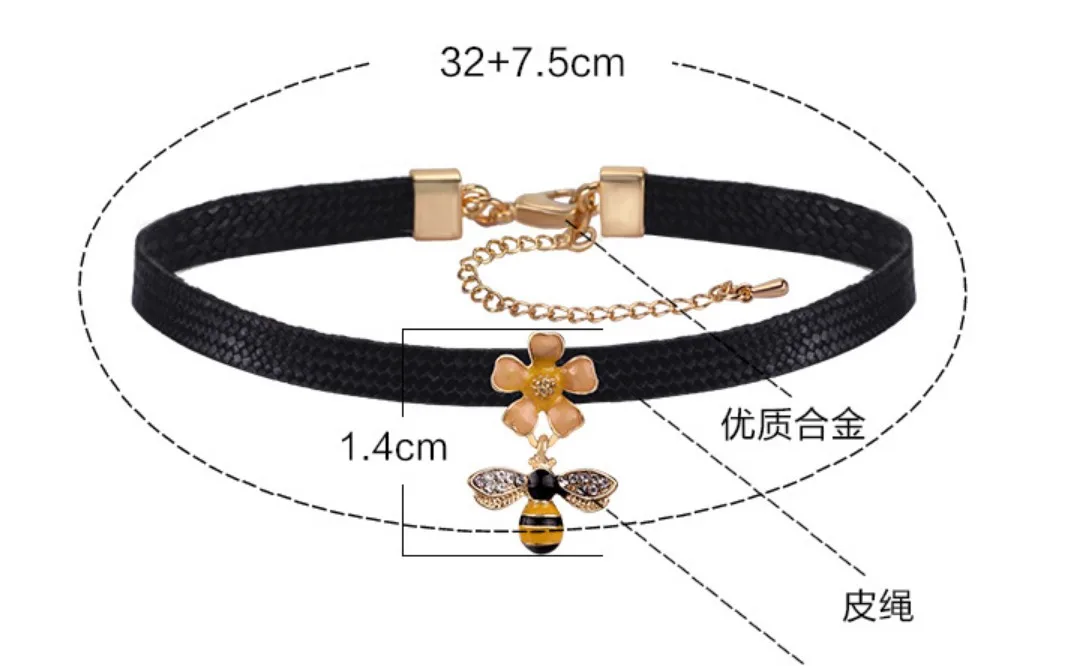 Cute Bee Flower Choker Necklace Black Leather Chain Short Necklace Clavicle Collar Girls Neck Chain Simple Personality Neck Band