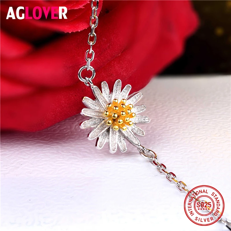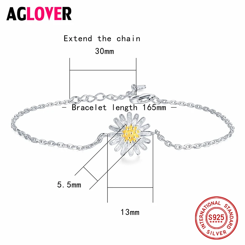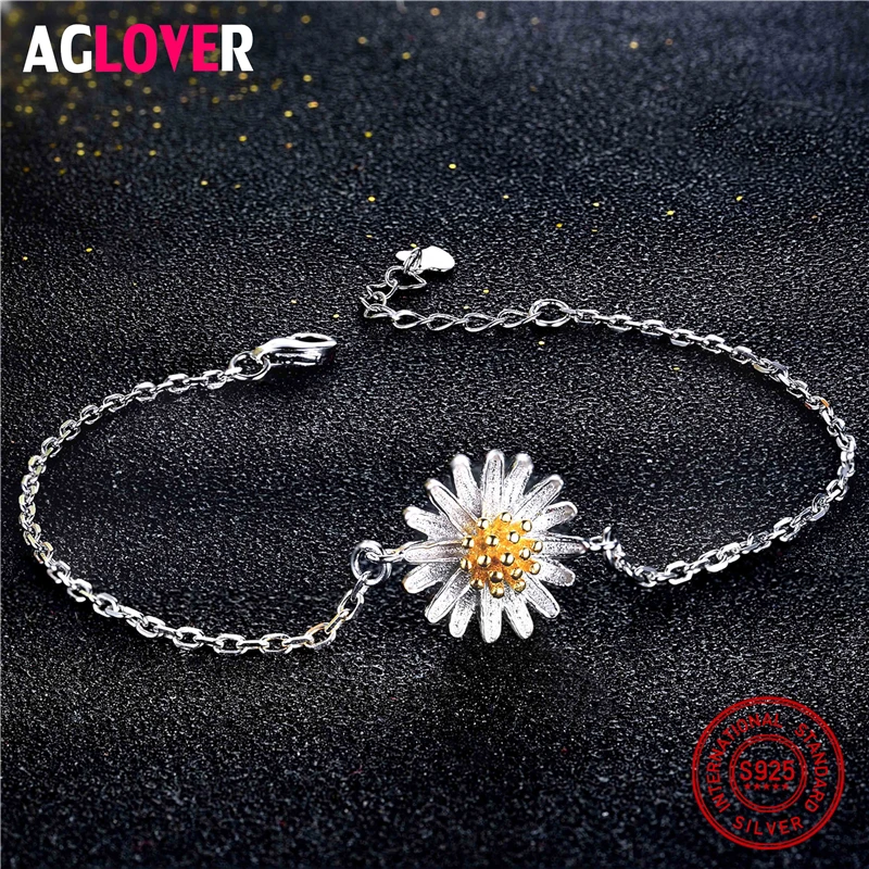 Cute Bracelet Daisy Flower 925 Sterling Silver Simple Accessories Bracelets for Women Fine Jewelry