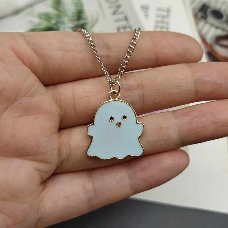 Cute Creative Ghost Face Necklace Silver Color Chain Pendant Necklace Black White Color Necklace Halloween jewelry