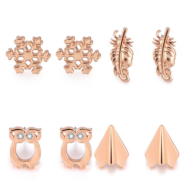 Cute Exquisite Crystal Stud Earring For Women Owl Arrow Snowflake Leaf Shape Earrings Jewelry Bijoux Brincos
