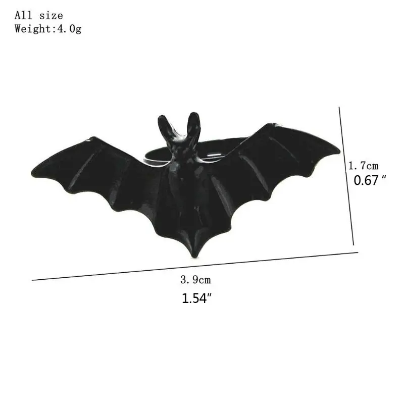 Cute Halloween Ring Black Bat Opening Adjustable Gothic Ring Band Unisex Jewelry