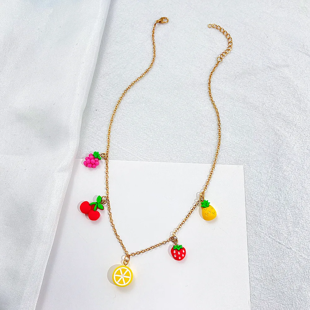 Cute INS Fruit Pendant Necklaces For Teen Girls Colorful Y2k Jewelry Candy Lemo Cherry Choker Chain Necklace For Women Gifts