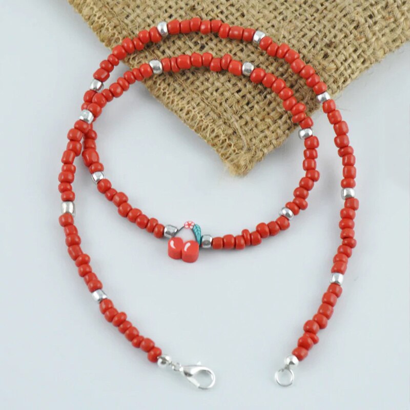 Cute Resin Fruit Pendant Necklace Boho Beaded Choker Korean Sweet Style Avocado Lemon Strawberry Cherry Colar Feminino