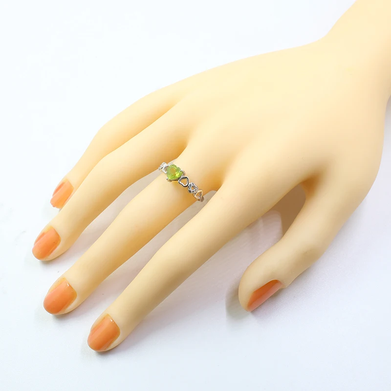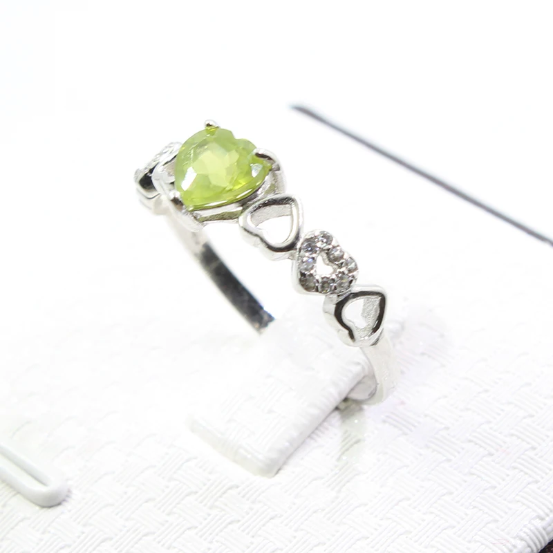 Cute silver heart ring for girl 6 mm natural peridot silver ring solid 925 sterling silver gemstone ring for engagement