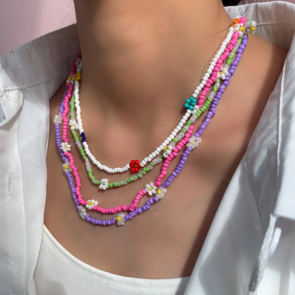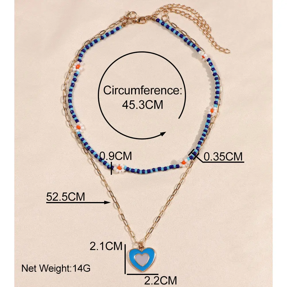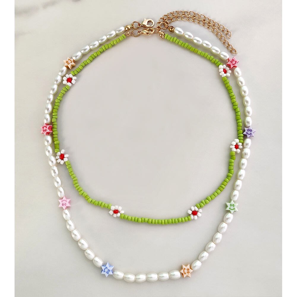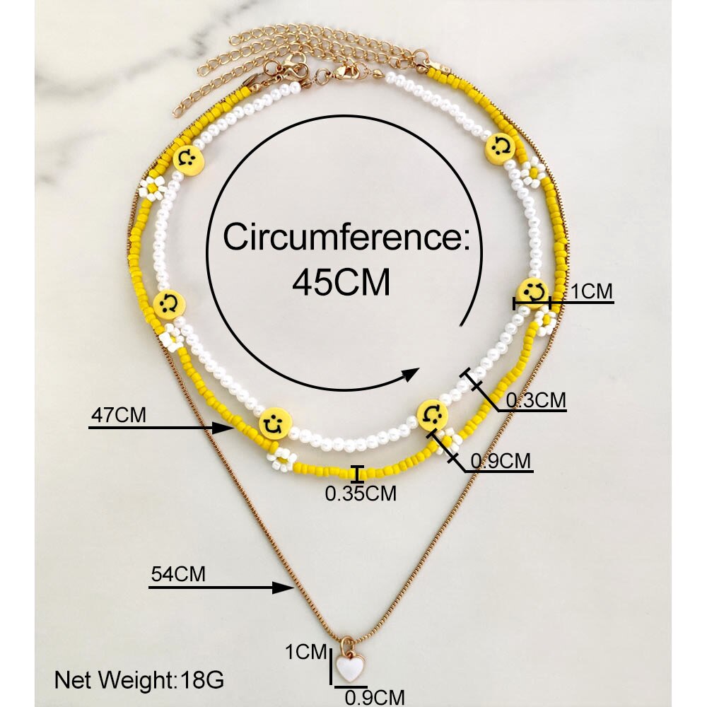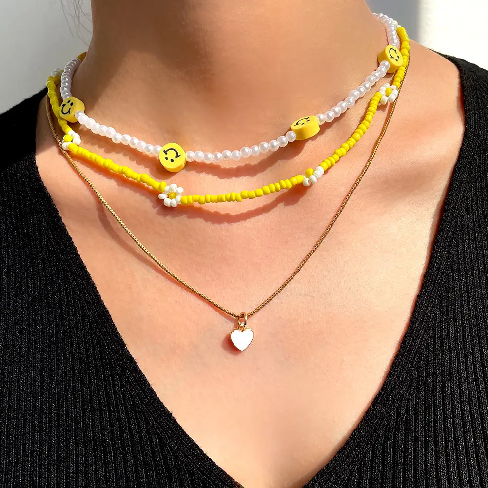 Cute Smiley Face Handmade Beaded Choker Necklace For Women Love Heart Pearls Flowers Long Chain Necklace Summer Beach Jewelry