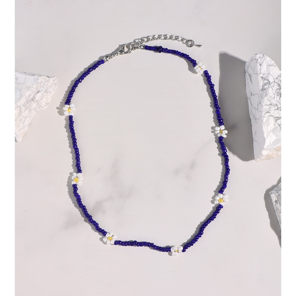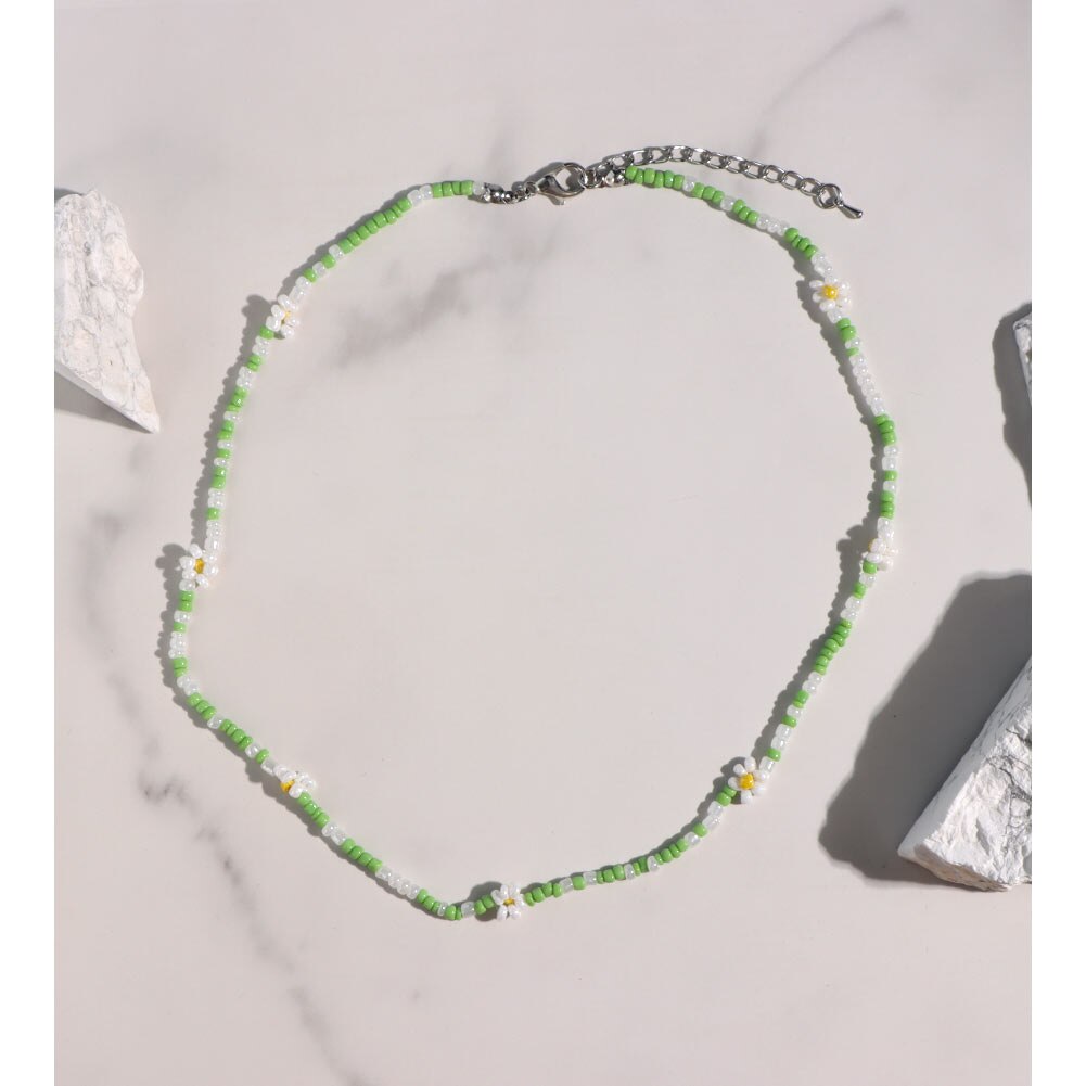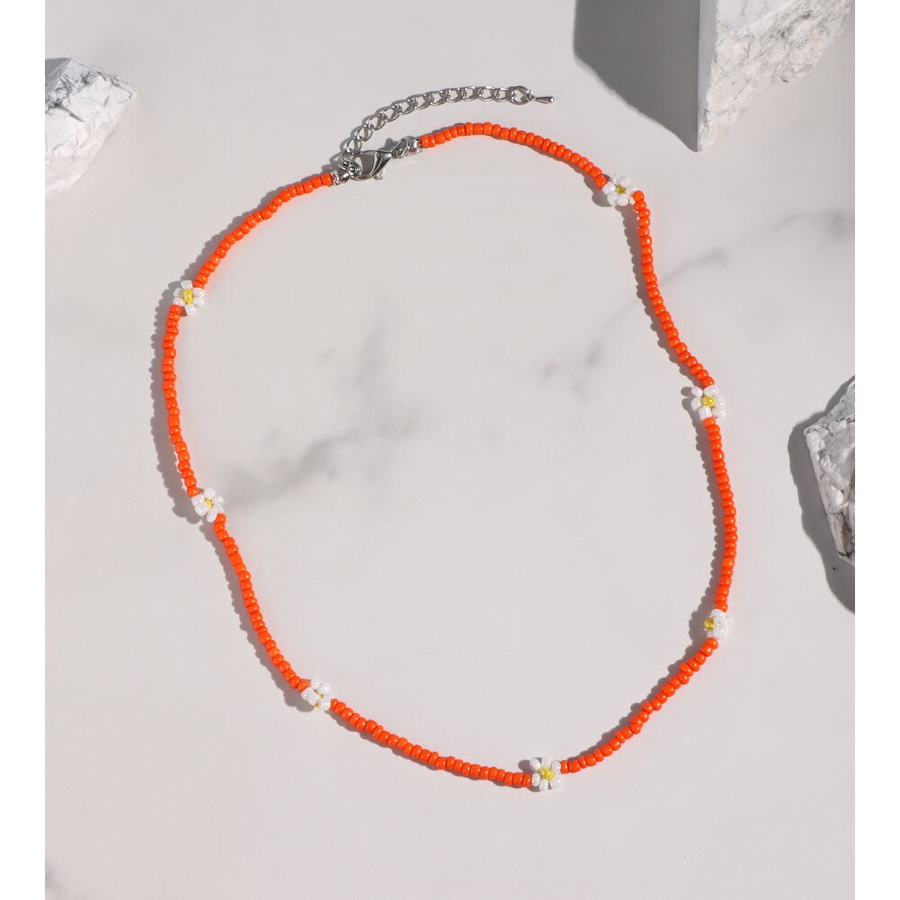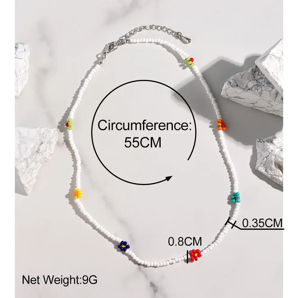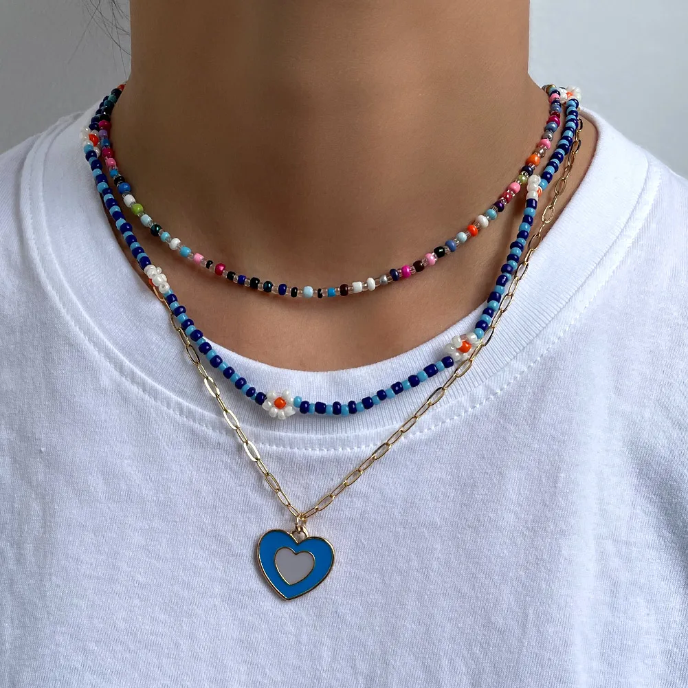 Cute Smiley Face Handmade Beaded Choker Necklace For Women Love Heart Pearls Flowers Long Chain Necklace Summer Beach Jewelry