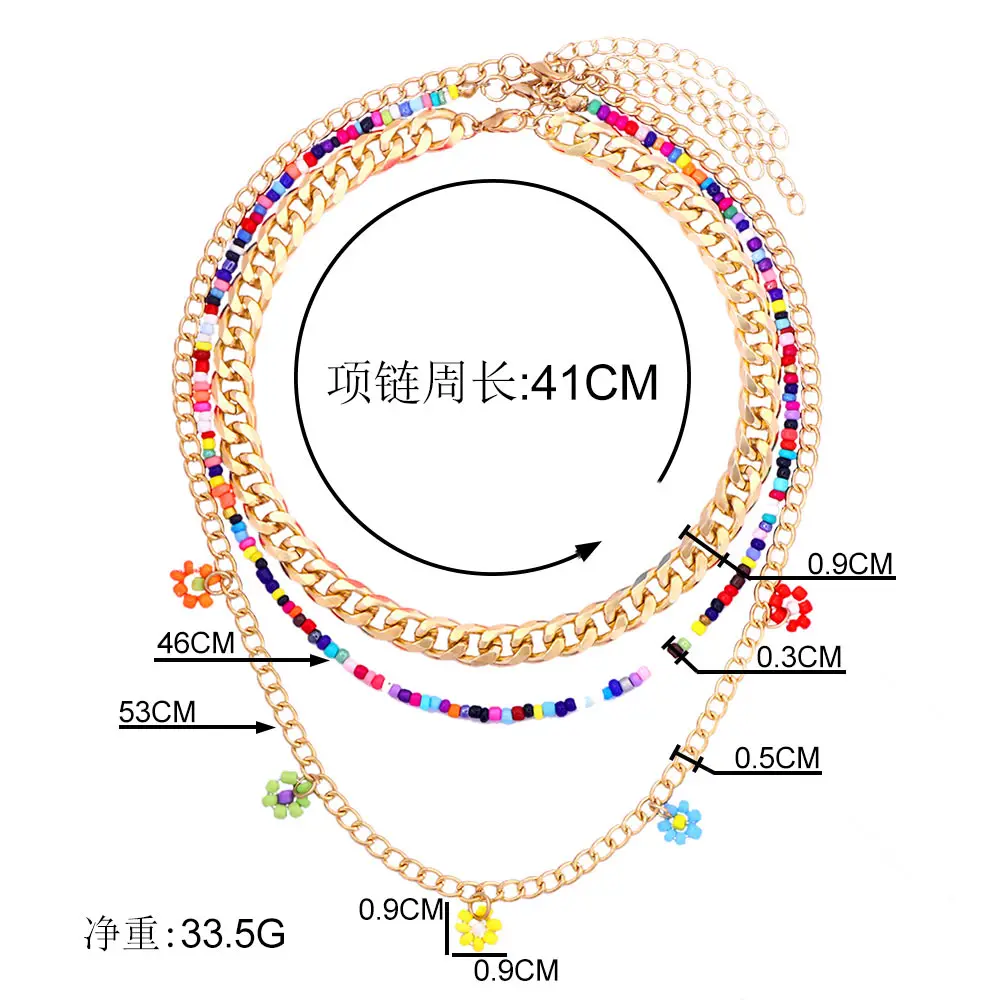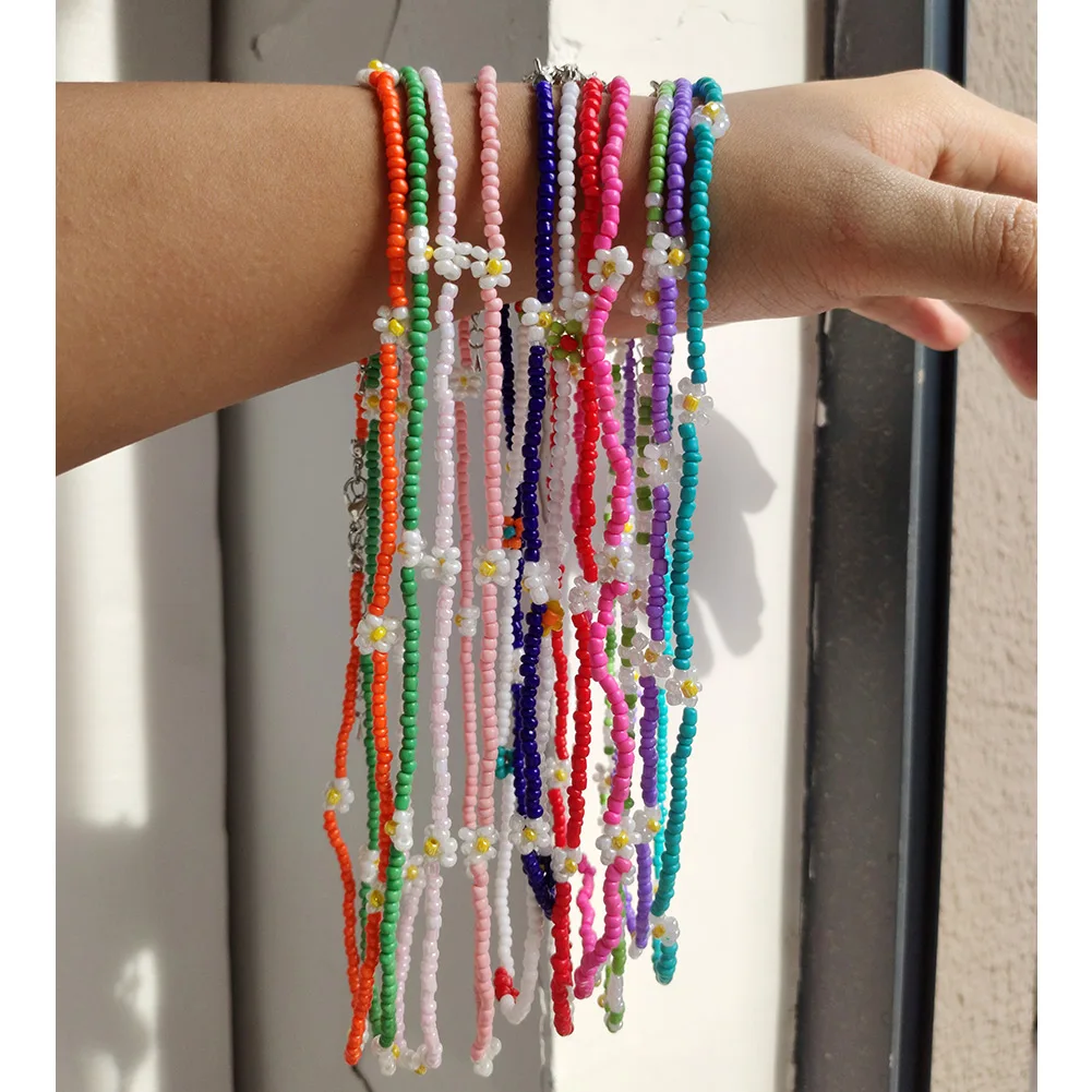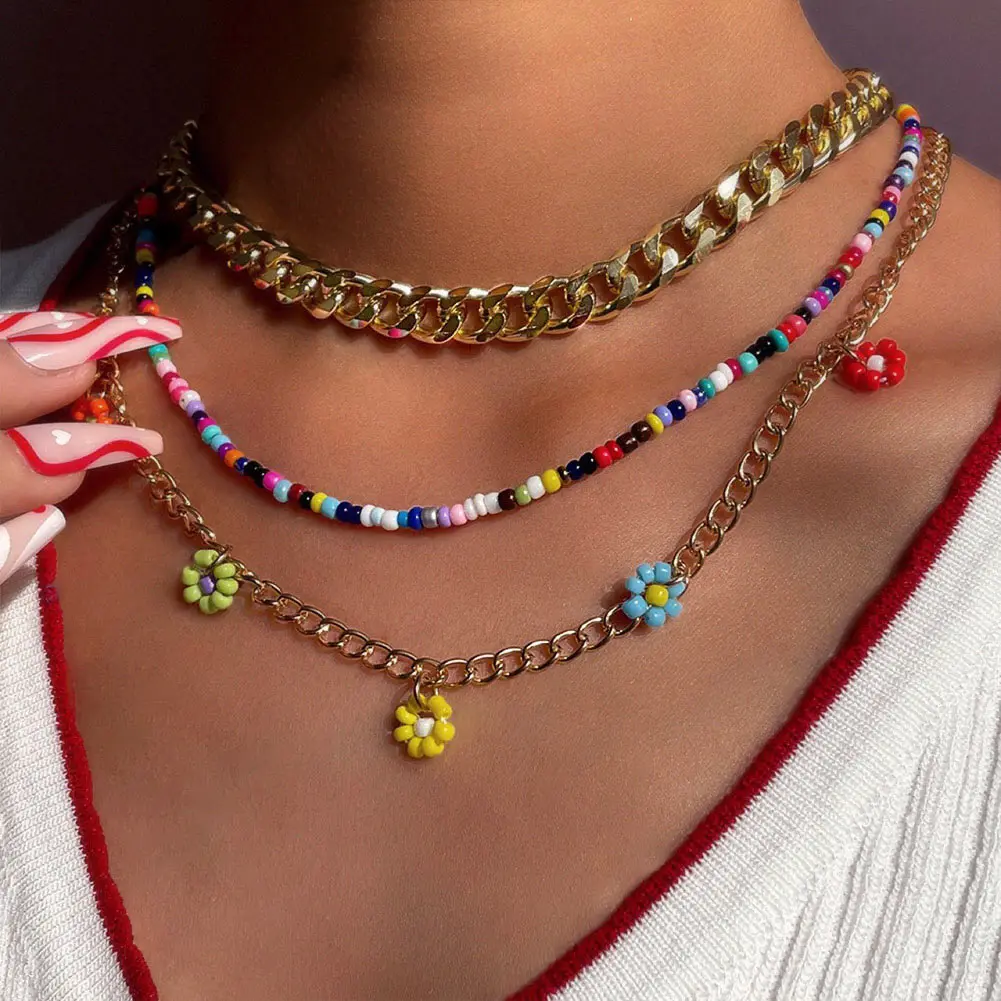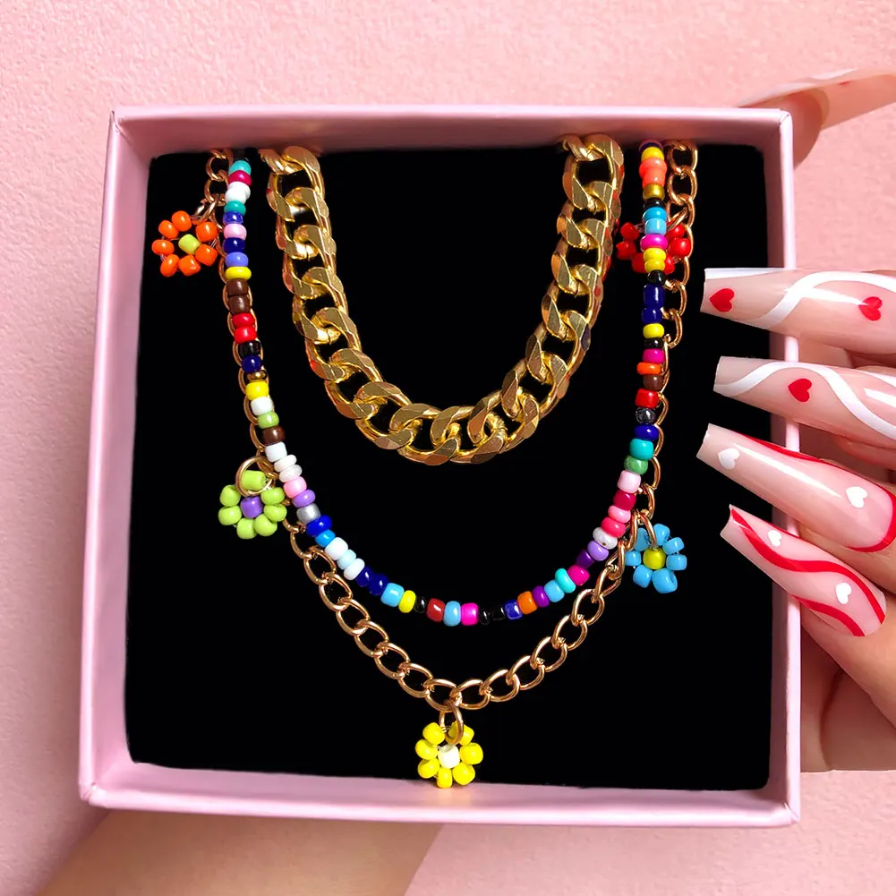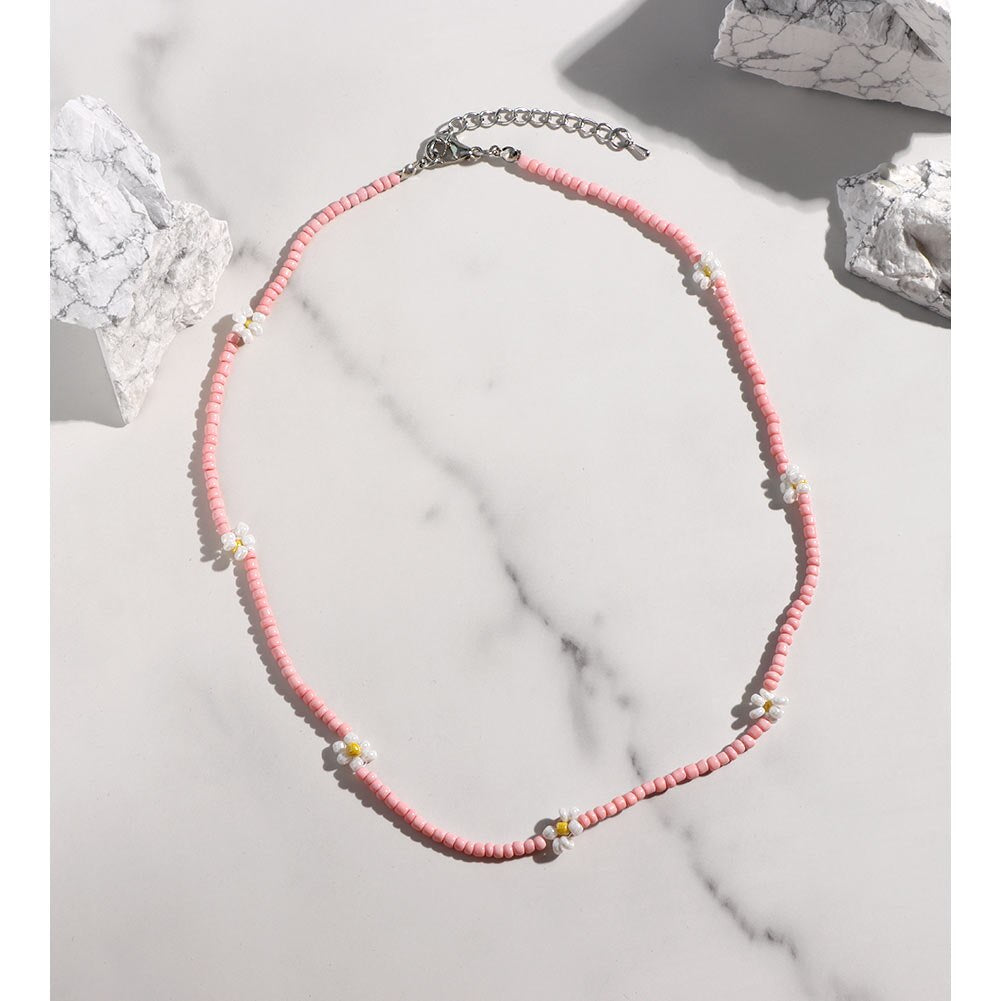 Cute Smiley Face Handmade Beaded Choker Necklace For Women Love Heart Pearls Flowers Long Chain Necklace Summer Beach Jewelry