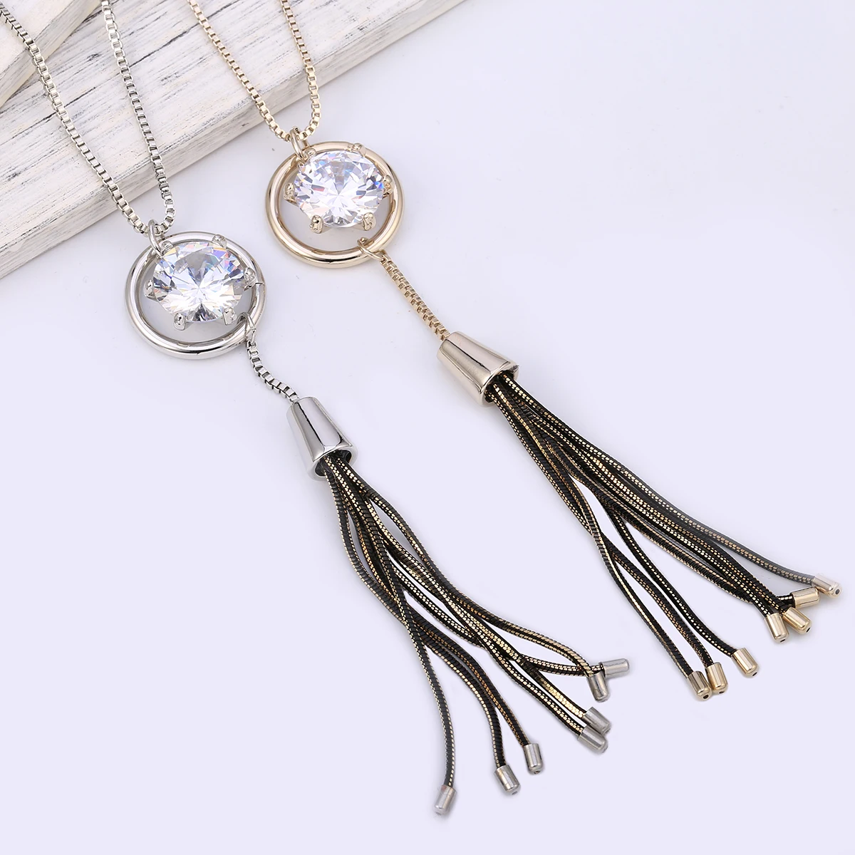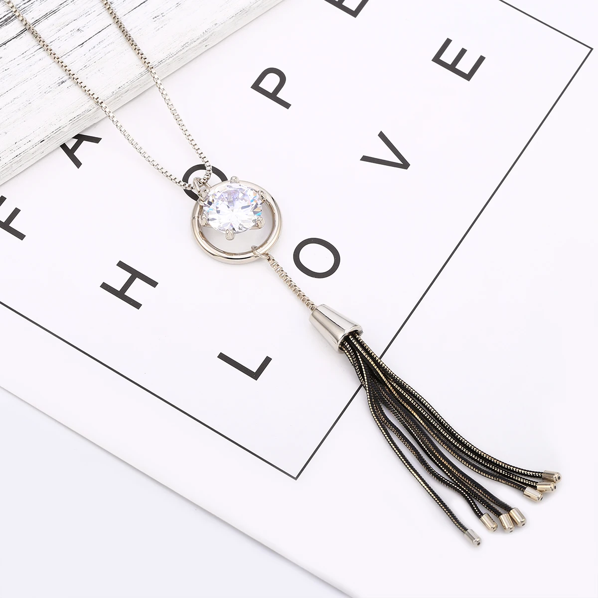 CZ Crystal Circle Metal Tassel Dress Necklace Simple Geometric Necklaces Pendant Long Sweater Necklaces Jewelry 2022