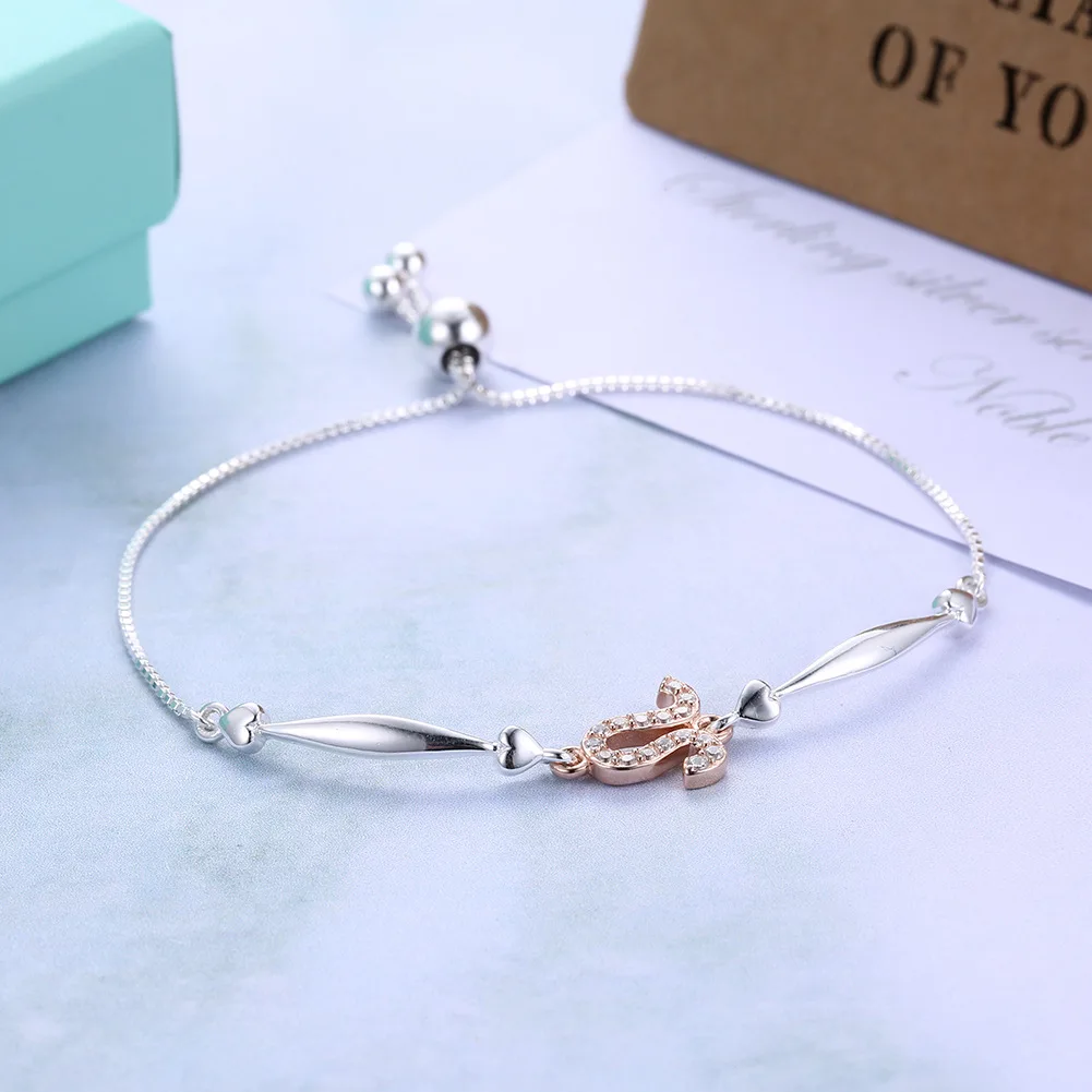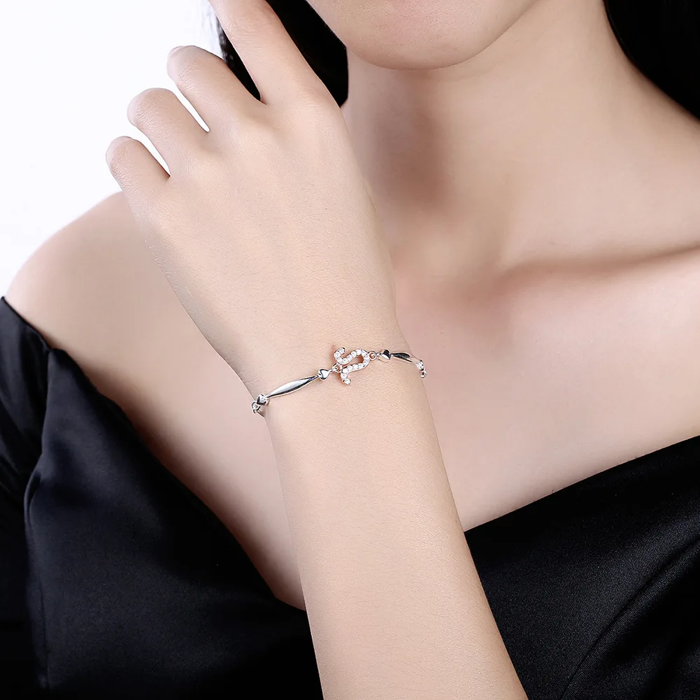 CZ Leo Constellation Rose Gold Hearts 925 Bracelet