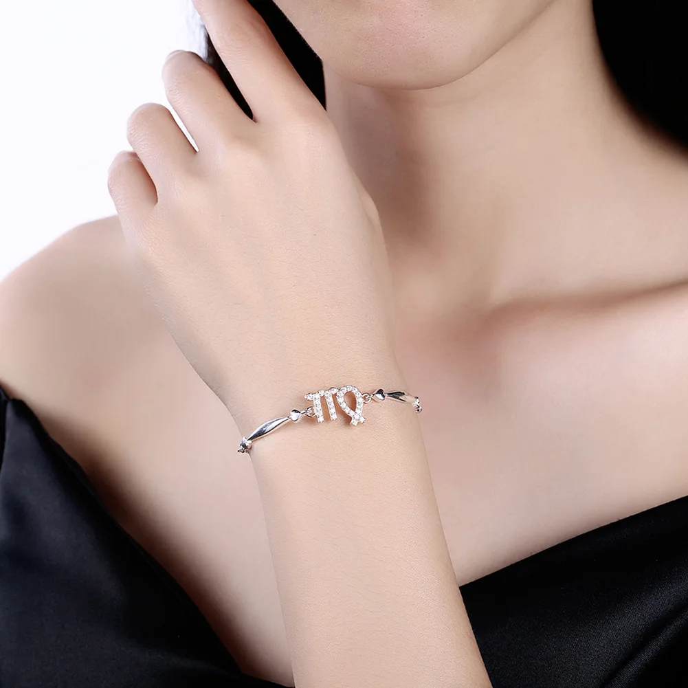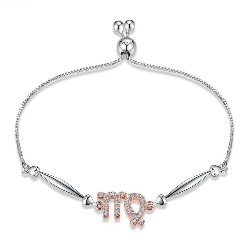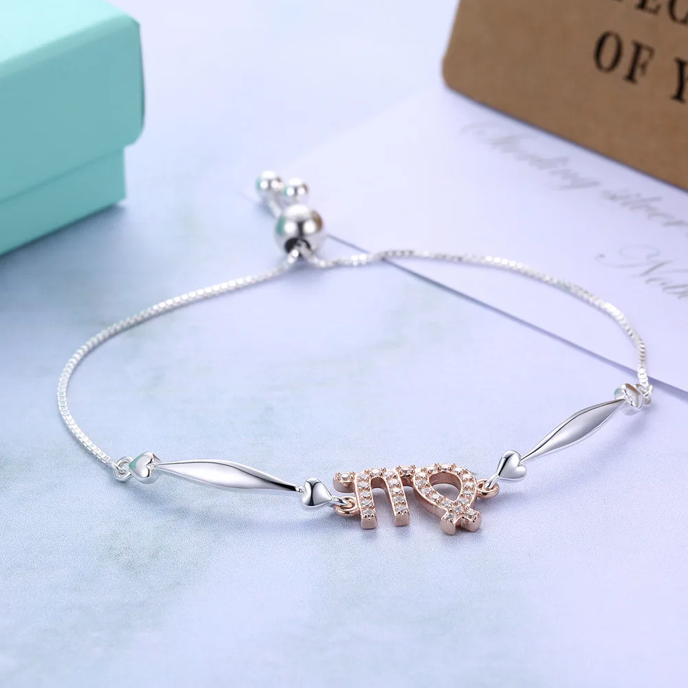 CZ Rose Gold Virgo Constellation Twisted Hearts 925 Bracelet