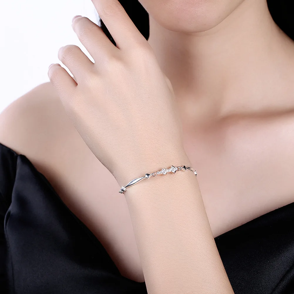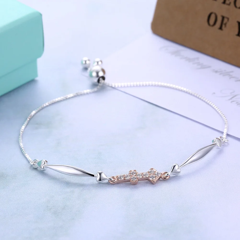 CZ Sagittarius Constellation Rose Gold Hearts 925 Bracelet