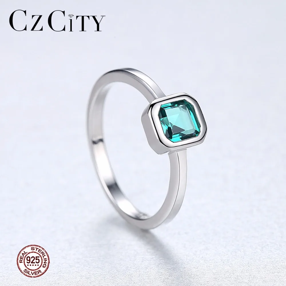 925 Sterling Silver Engagement Rings for Women 4mm*4mm Square Emerald Gemstone Promise Wedding Ring Anel Feminino SR0082