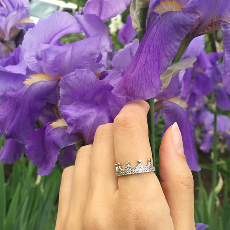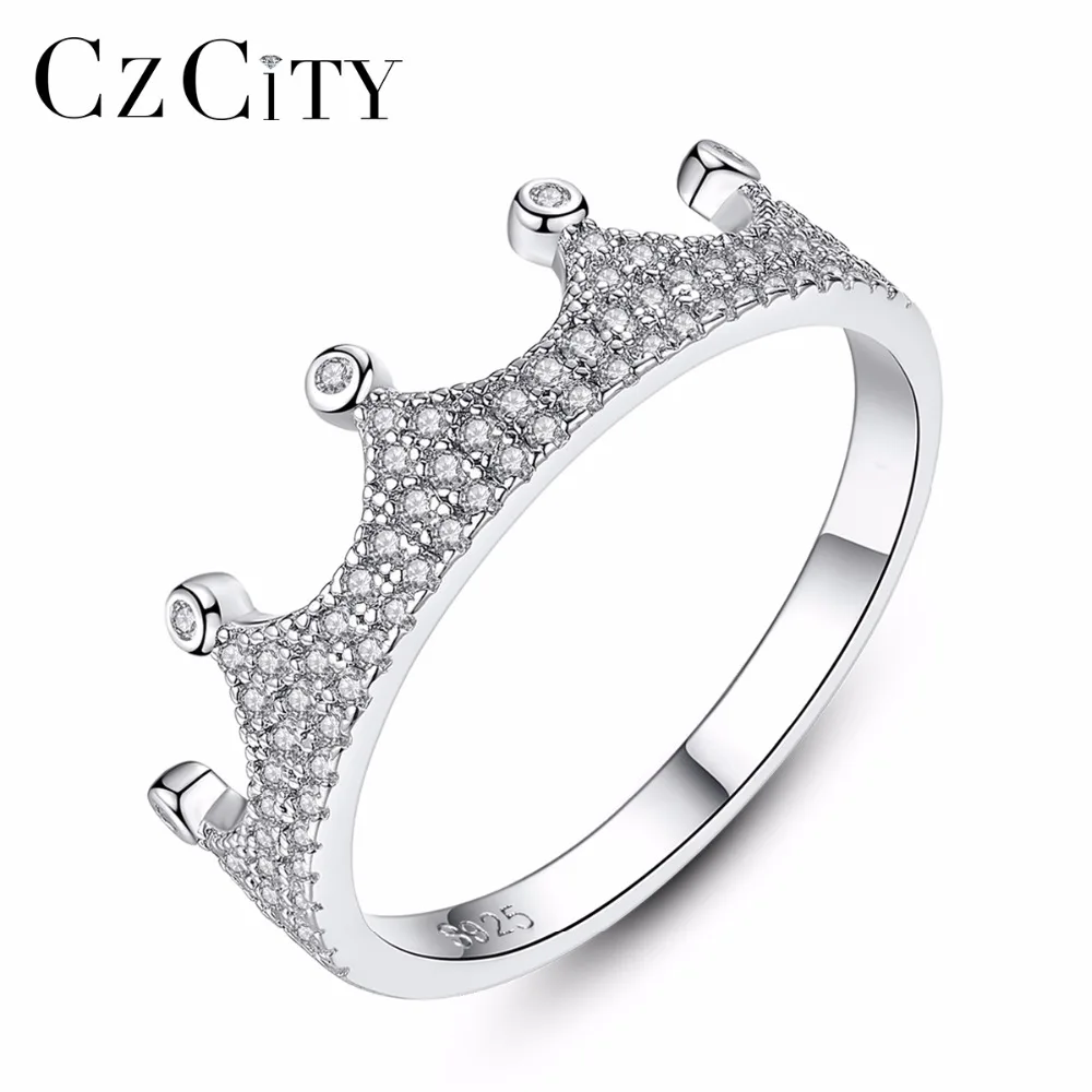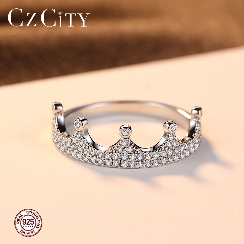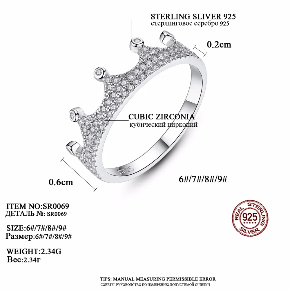 925 Sterling Silver Sparkling Crown Stackable Rings for Women White Zircon Micro Paved Ring Valentine's D Gift Jewelry