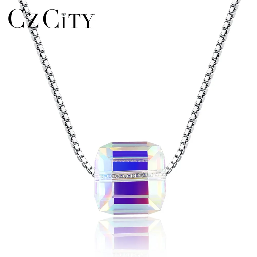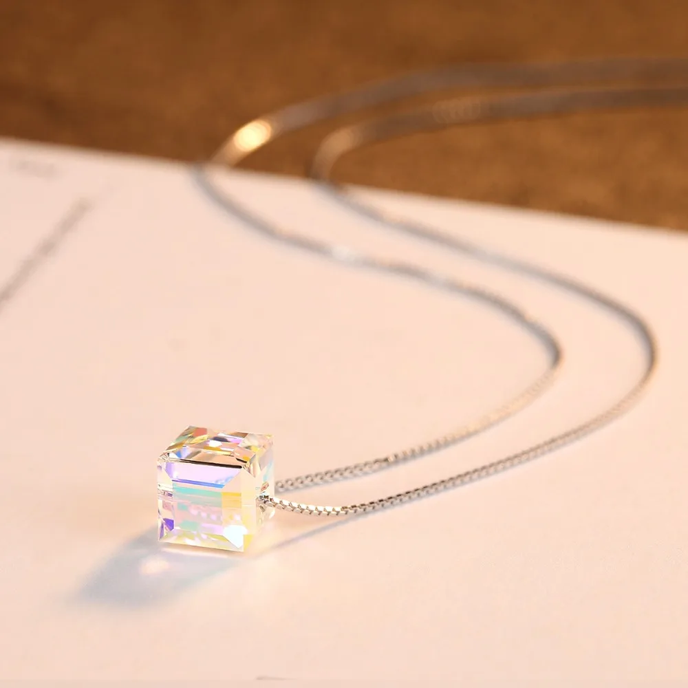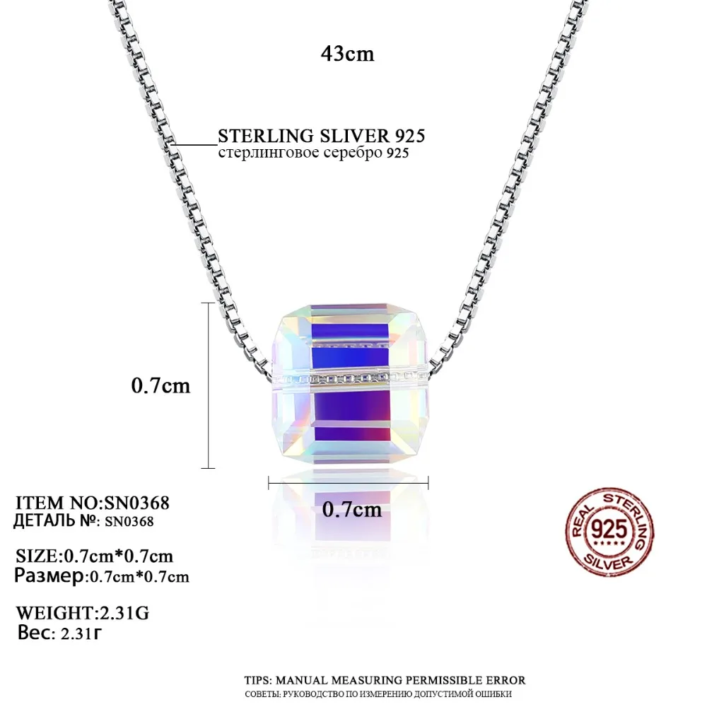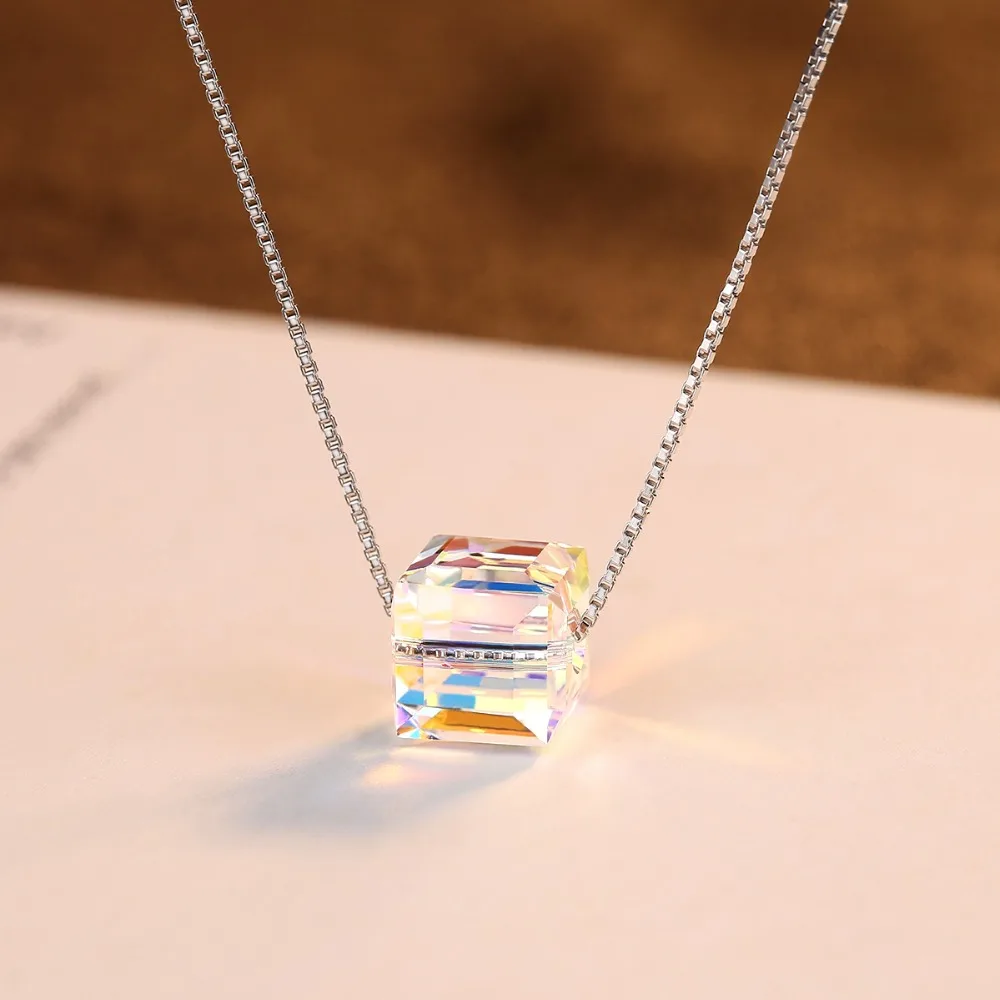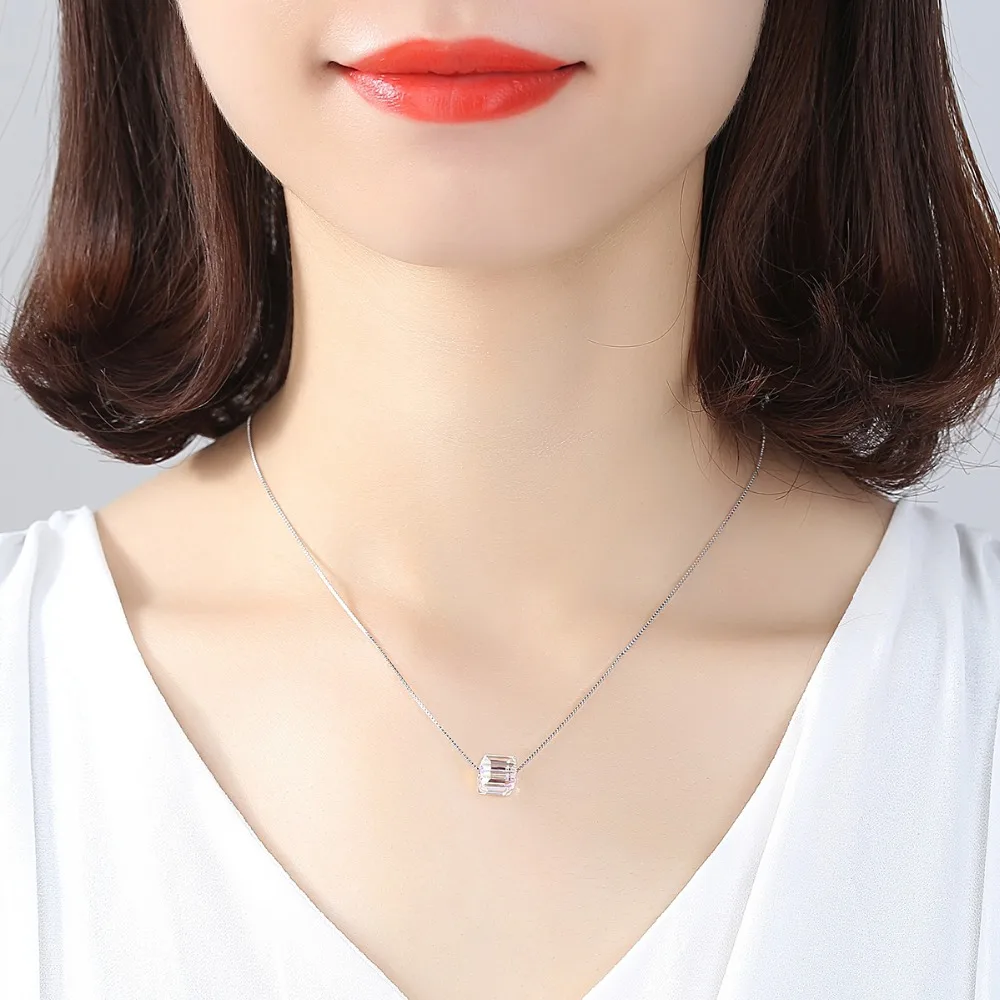 Brand Real 925 Sterling Silver Box Chain Necklaces for Women Simple Design Square Bead Pendant Women Necklace Gift 2020